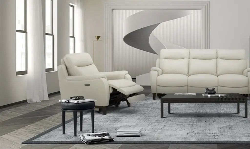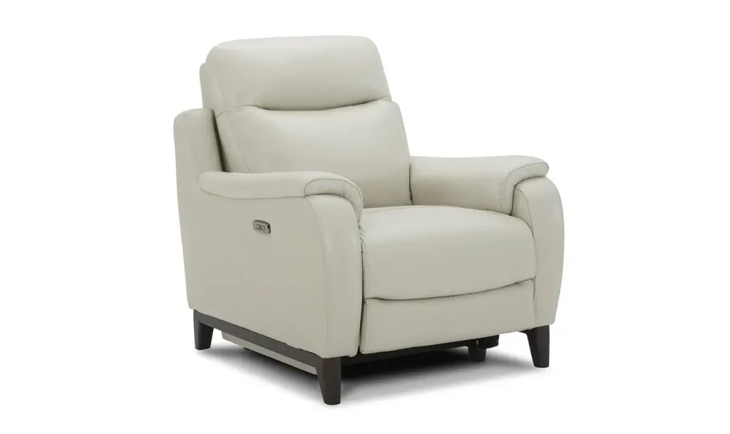 Leonard dual-power recliner chair can easily become your comfort zone of your home. When you sit on this chair, it feels like you are sinking into the buttery soft top grain leather. Its matching vinyl on the sides and back gives this chair a sleek and luxurious finish from every angle. Those cushions are made of foam with polyester fiber, a combo that promises support and plushness. Now, let’s get to the bones of this beauty. The frame is made of sturdy plywood and larch, so you know it’s built to last. And those solid wood feet add stability but also a touch of rustic charm to the overall look. Last but not least, those exposed wood legs are like the cherry on top of this already amazing recliner sundae. So, if you’re ready to kick back, relax, and take your lounging game to the next level, the Leonard Dual Power Recliner Chair is here to make it happen.