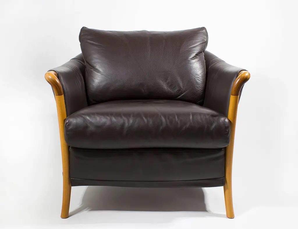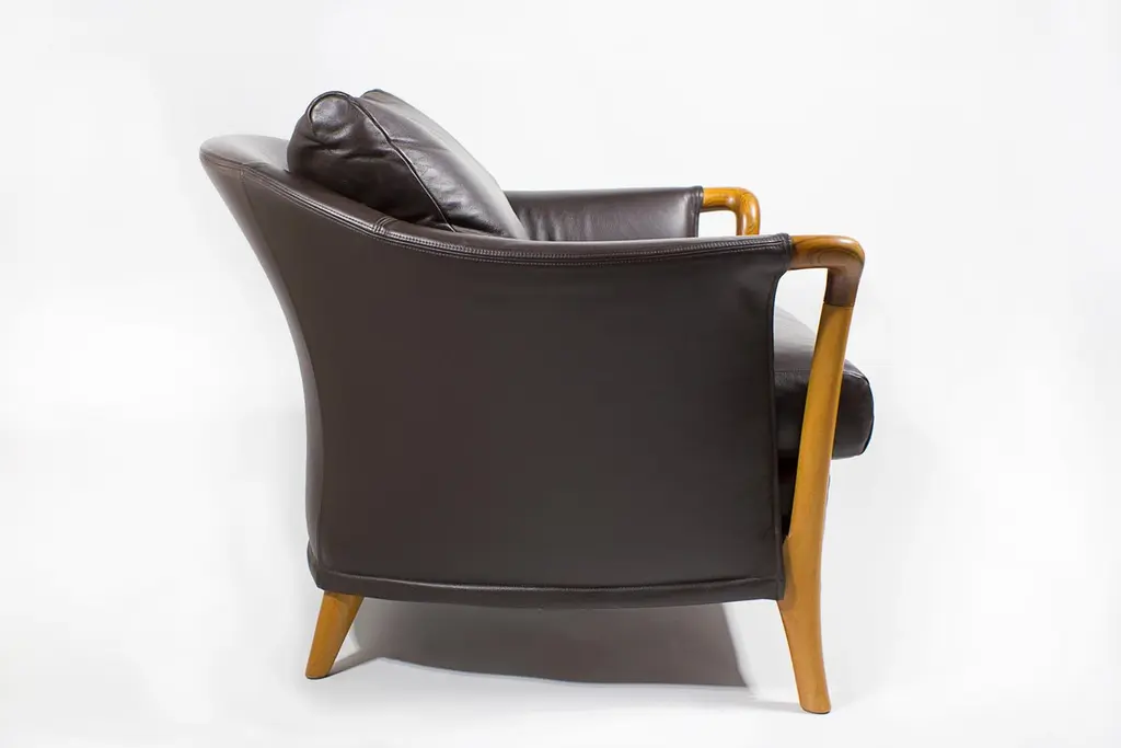 Giorgetti Progetti Series 'Peggy' Lounge Chairs In Chocolate Brown Leather