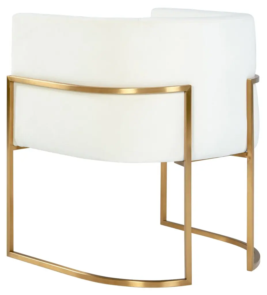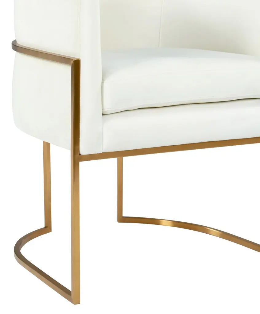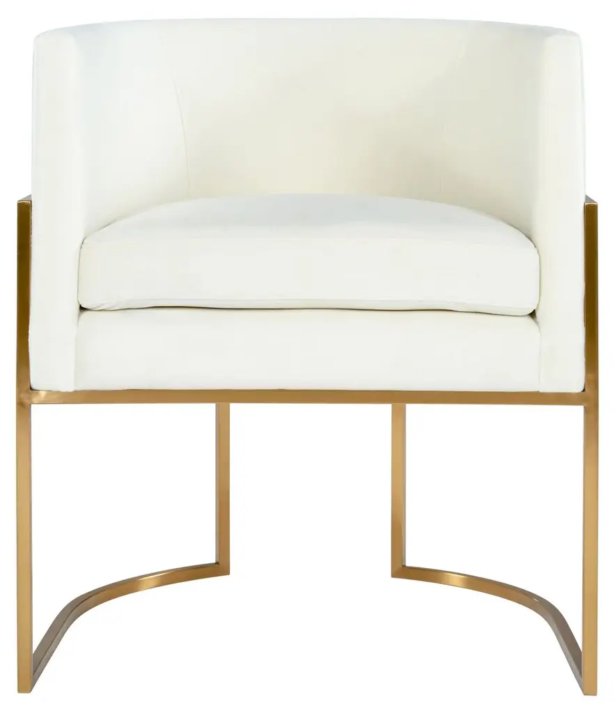 A barrel back and cream velvet upholstery make this eye-catching accent chair a standout piece. The open steel base is finished in gold, which keeps the piece feeling light and luxe. This chair is part of a collaboration with Inspire Me!, an Instagram account founded by Farah Merhi that has since grown to become a lifestyle brand.