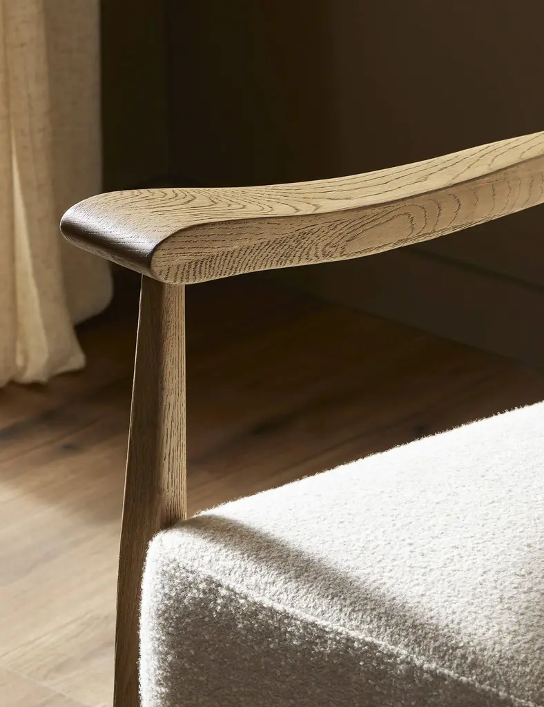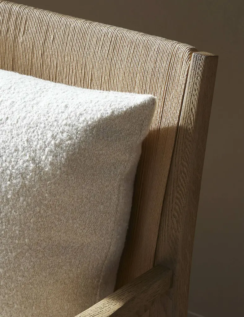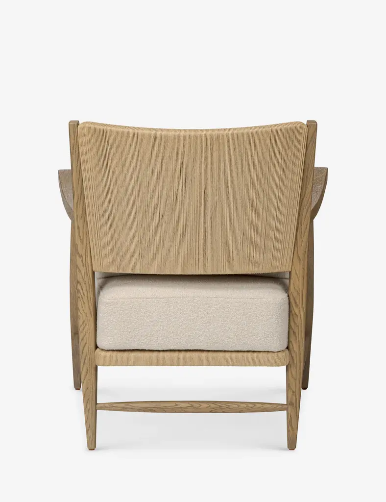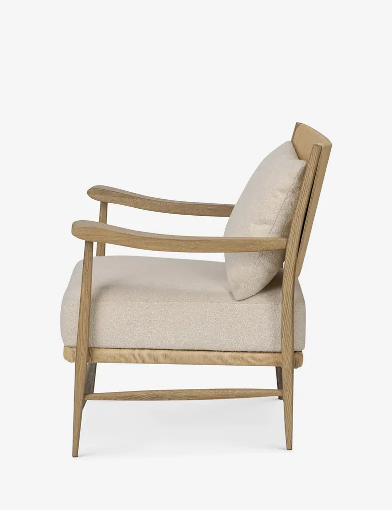 Four Hands brings their exceptional craftsmanship to a timeless collection rooted in Amber Lewis' perennial California style. A natural material mix of wood and cord offers a subtle play of tone and texture in the Godfrey accent chair. This chair's fixed seat cushion ensures stability with a loose pillow back for custom comfortboth upholstered in a rich cream boucle.