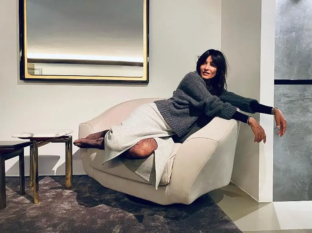 An homage to Italian Art Deco, but with contemporary proportions and comfort. The important dimensions of this armchair are softened by the relaxing curves and by the "flying" arms. Resting on a round foot, its large volume appears suspended, light. The Grande armchair is generous and comfortable, more like a sofa for one person (or even two). Its extreme comfort is enhanced by feather cushions. The round base of the revolving mechanism is finished in Gold Chrome or Light or Dark Bronze.The Grande armchair is available in fabric or leather, with two sizes of extra cushions. The seat is in shaped polyurethane, memory foam, with polyester fibre cover. Tre frame is in beech wood and marine plywood. The base in in brass.The price of 8,260 euros is for the Grande armchair in fabric cat. D (see picture) with Bronze base.