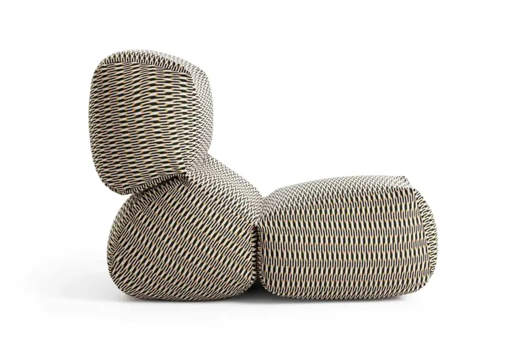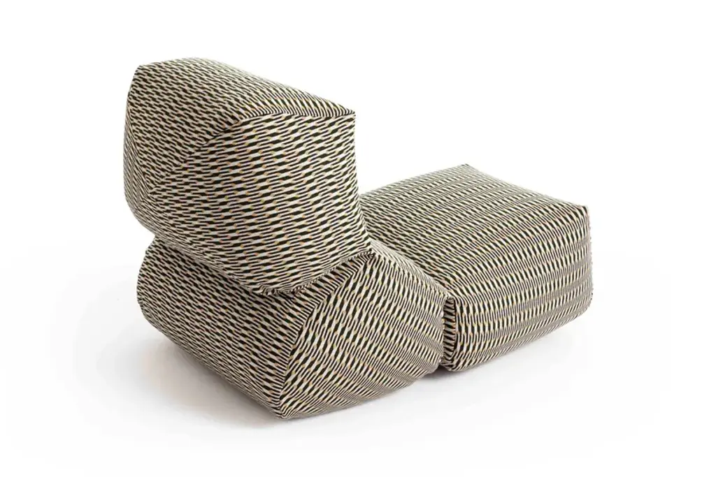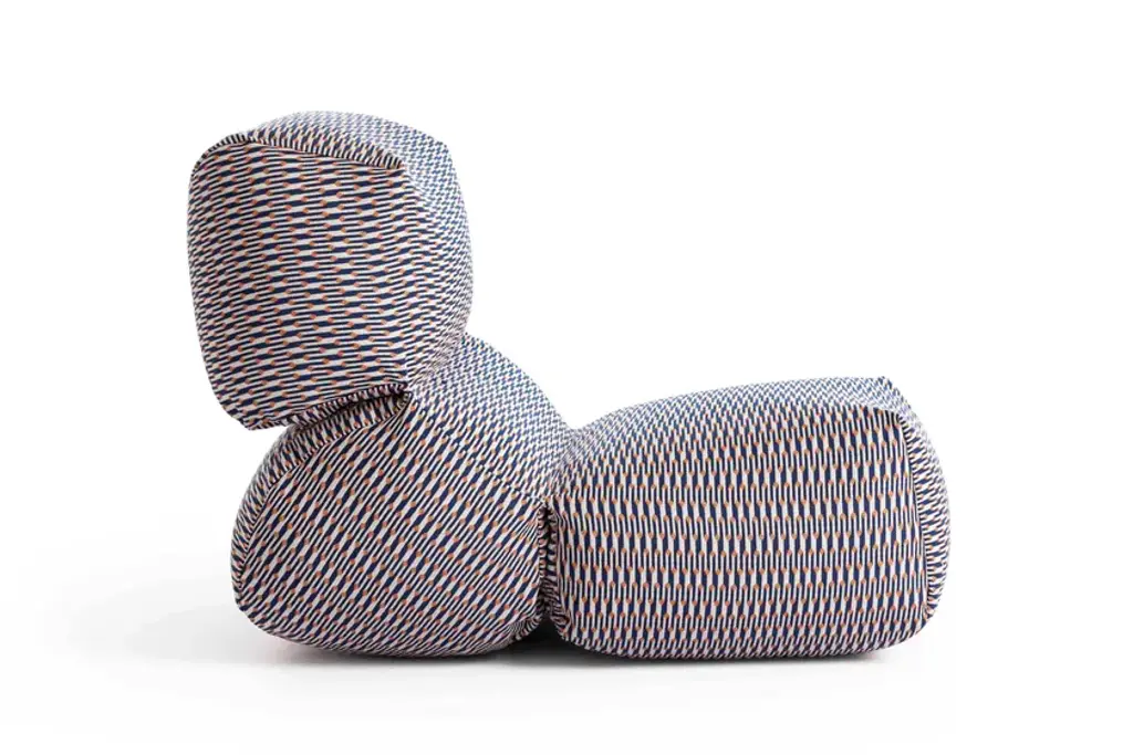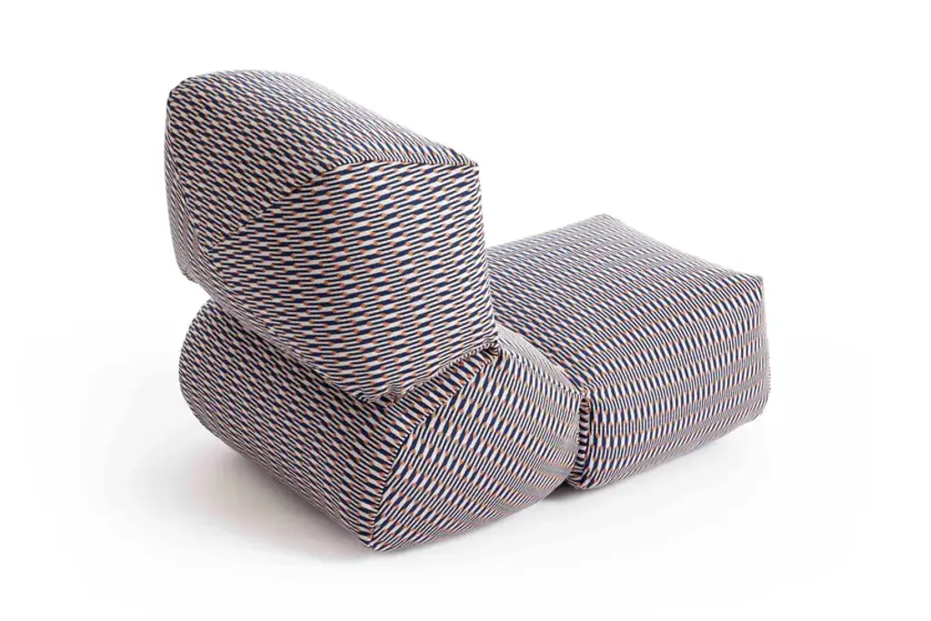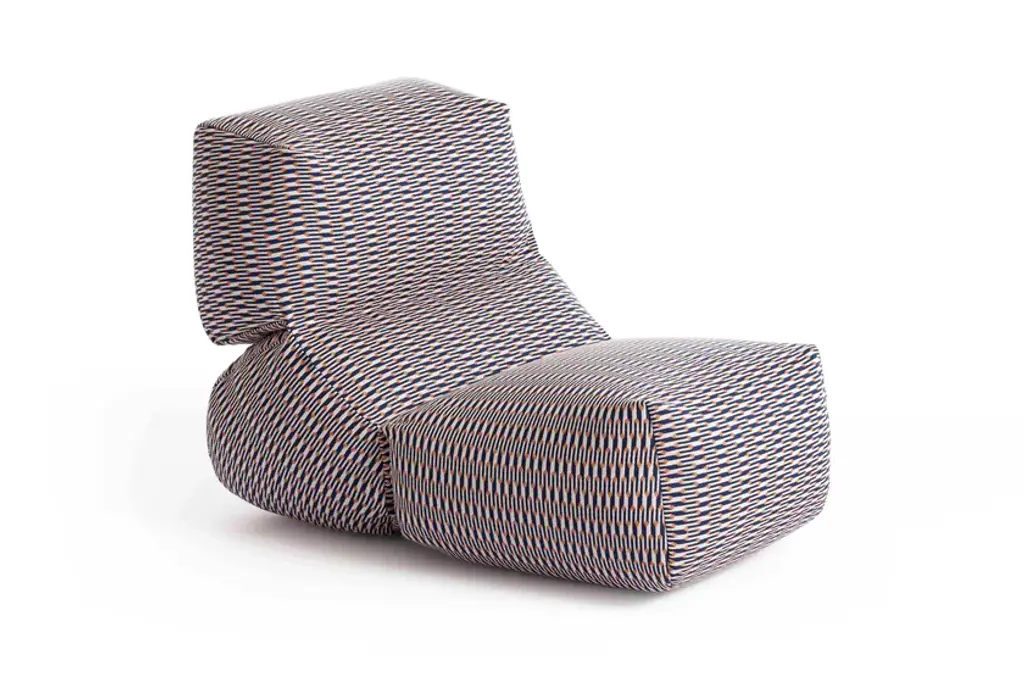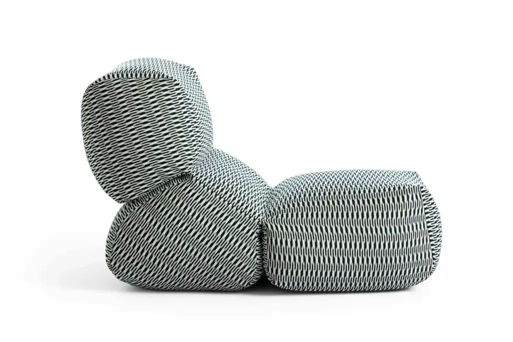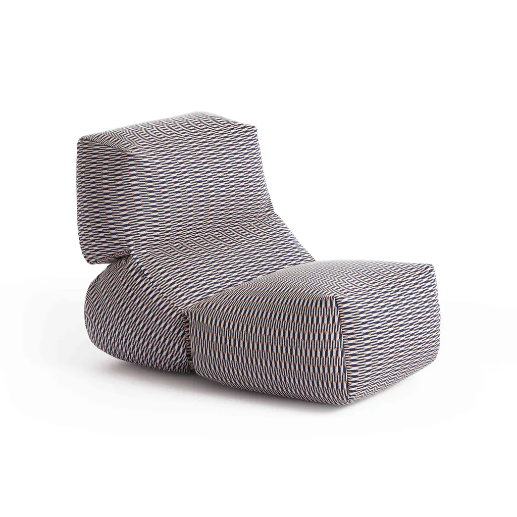 First introduced fi ve years ago as a comfortable and original lounge chair for indoor spaces, GRAPY continues to evolve with new textures and prints to conquer the outdoor sphere with its unique and ergonomic silhouette.The iconic soft seat, created by Japanese designer Kensaku Oshiro for GAN, adds new special fabrics for outdoor use to its catalog of fi nishes this season. Accustomed to solid colors in materials such as cotton, canvas, and velvet, the elasticity and softness of GRAPY now comes in two new geometric fabrics with removable covers, both available in three shades - blue, ochre, and orange.On the one hand, Marquetry, from the Bahia collection by Sunbrella, exudes warmth in its three chromatic variants. With a water-repellent and stain-resistant finish, it is surprising both for its attractive and elegant jacquard with art deco reminiscences and for its resistance and versatility.On the other hand, GRAPY is covered in charming Vichy squares and Mediterranean airs when upholstered with the Meltemi Texture fabric from the WaterProof in&out series by Jover Decó. This state-of-the-art technical fabric is waterproof and breathable, as well as stain-resistant, and very easy to maintain.In any of its finishes, GRAPY’s shapes stand out for their generosity -it measures 70x100x60 cm (28”x39”x24”h) - and flexibility, due to the elastic connection of the three volumes that make up its structure, joined by reinforced seams, and to its filling, made up of a mixture of polystyrene and foam rubber.Upholstery: Technical fabric upholstery for outdoorsFilling: Waterproof cover + Mix of polystyrene and chopped foam rubberColours: Blue, Ochre, Orange