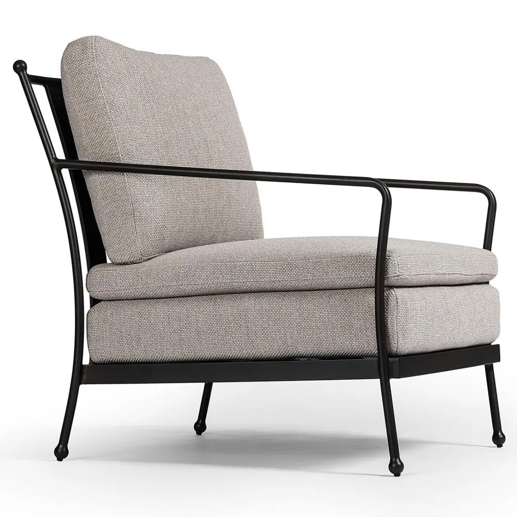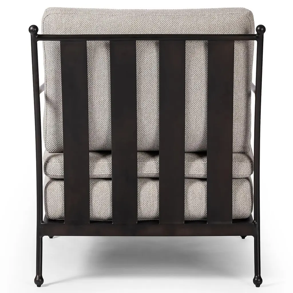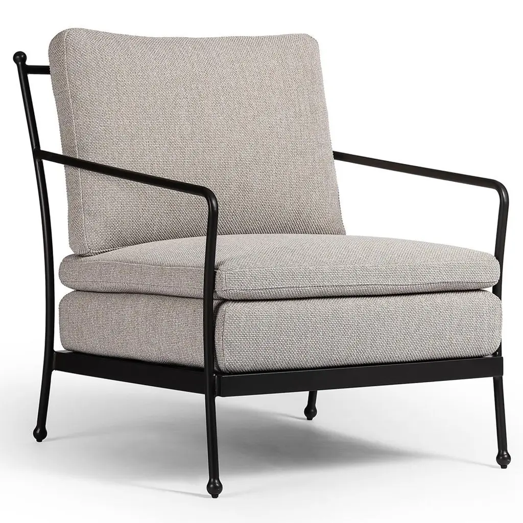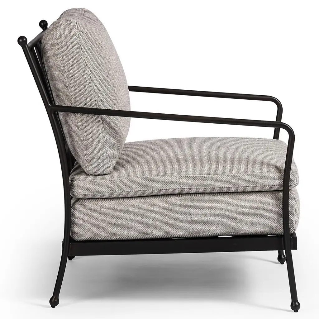 Gretchen French Country Grey Upholstered Black Aluminum Outdoor Lounge Chair