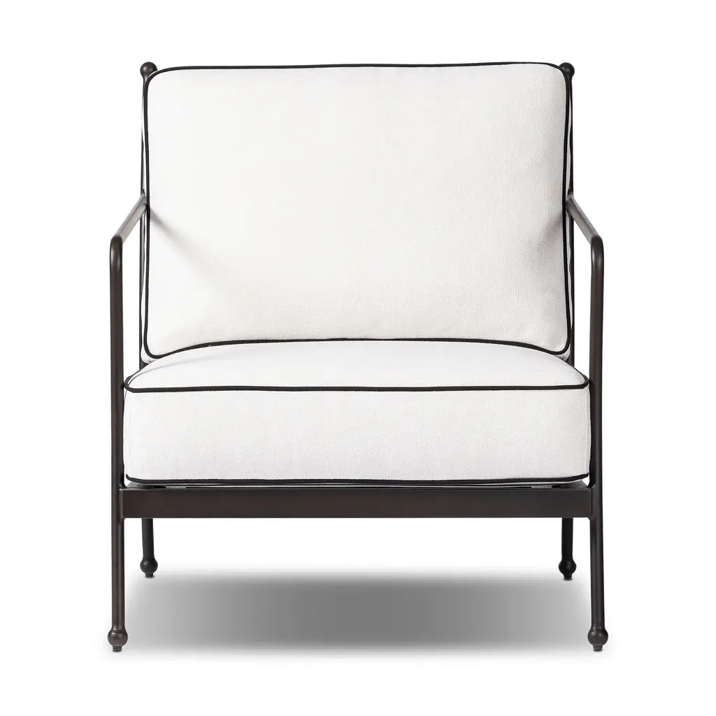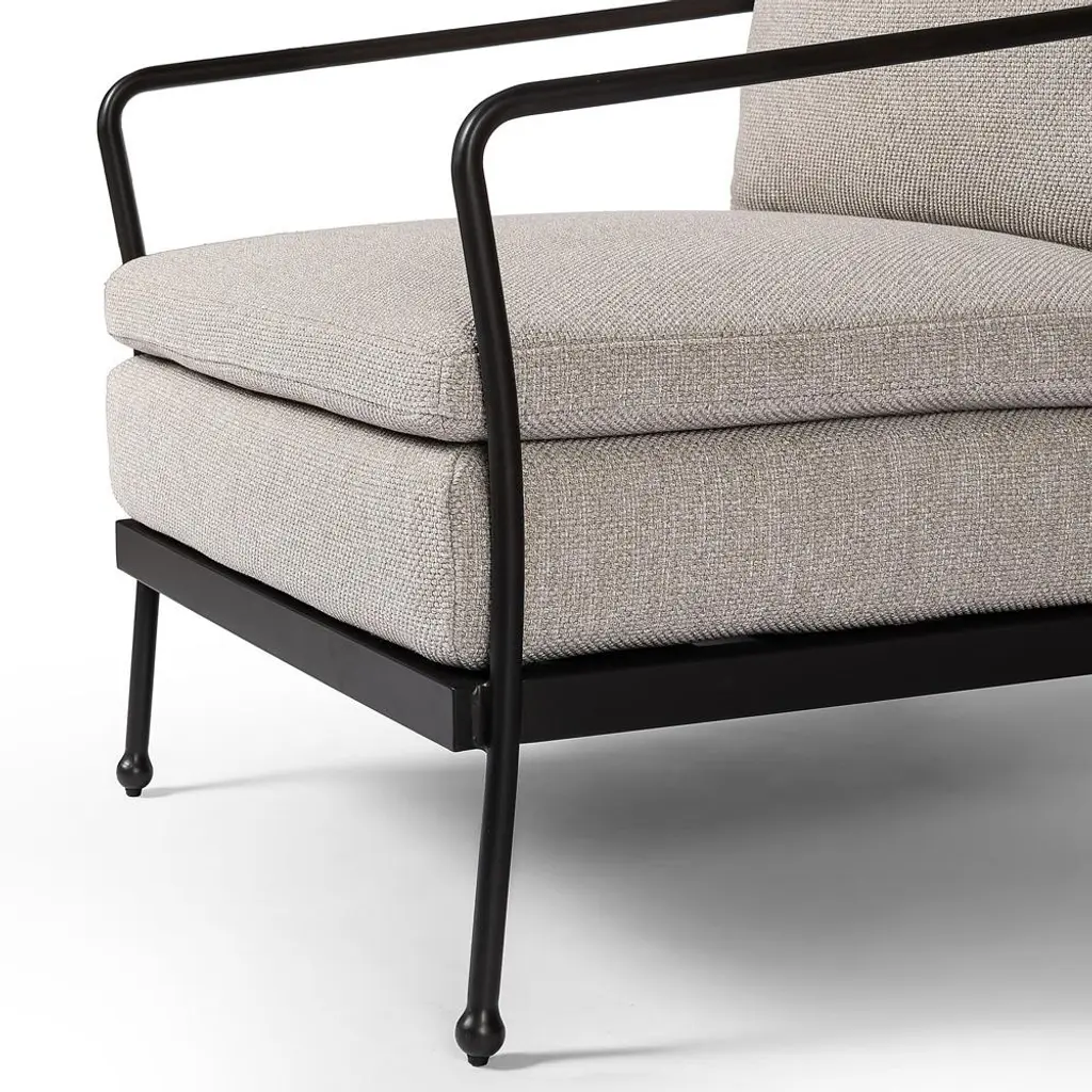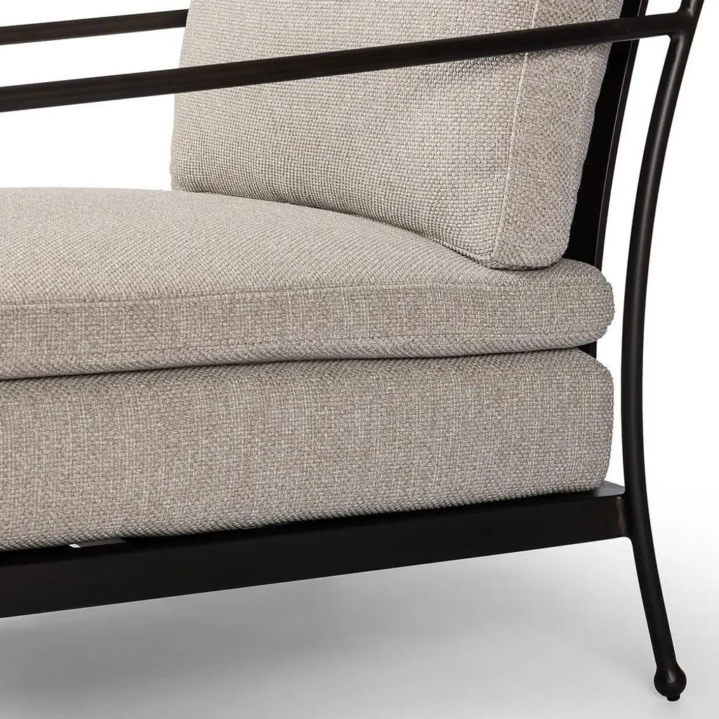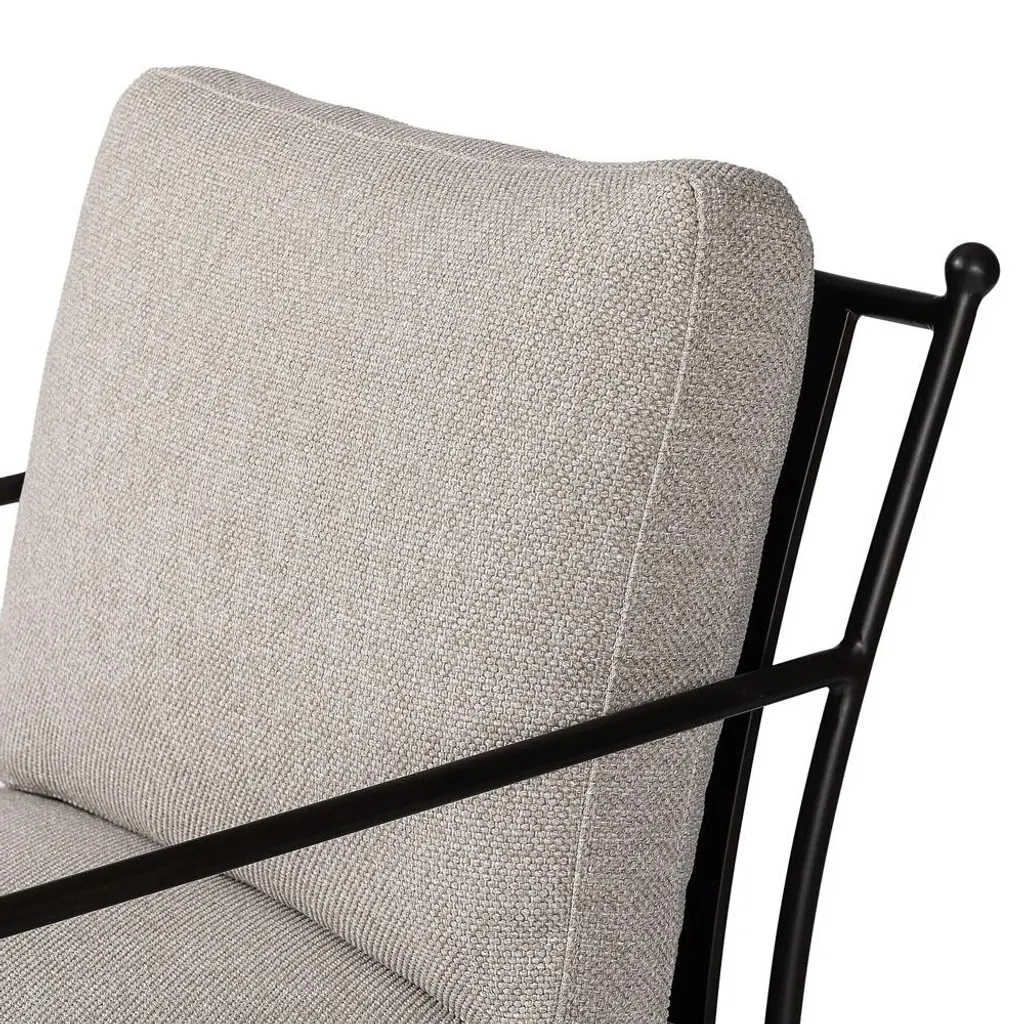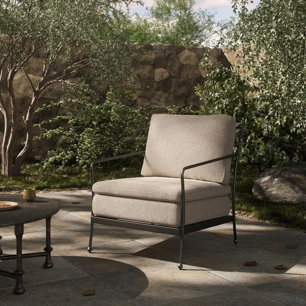 Gretchen French Country Grey Upholstered Black Aluminum Outdoor Lounge Chair