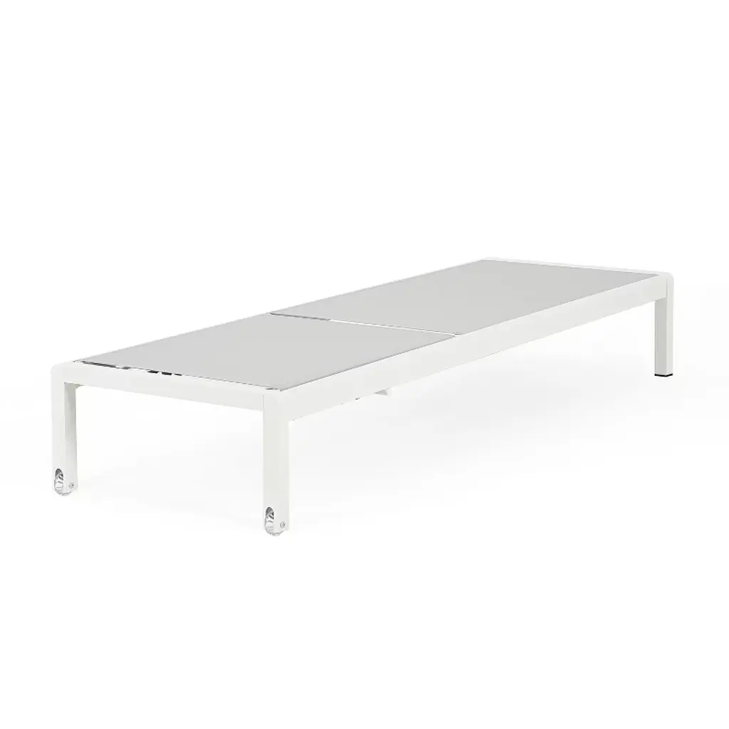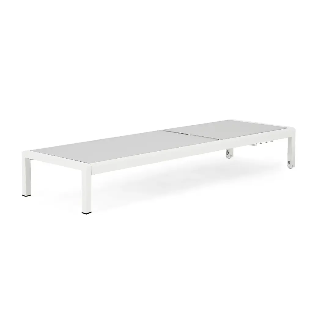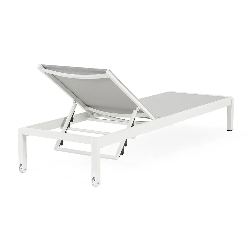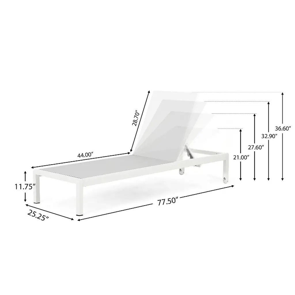 Elevate your outdoor relaxation with the White Frame & Gray Mesh Outdoor Chaise Lounge Chair Set of 2. Designed for all-weather use, these lounge chairs feature a rust-resistant powder-coated aluminum frame and UV-treated mesh that withstands the elements, making them perfect for poolside, patio, or beachside lounging. With a 4-position recline control, you can easily adjust the backrest to find your ideal angle for reading, sunbathing, or napping. Weighing only 21.16 lbs yet capable of supporting up to 400 lbs, these chairs offer an unmatched strength-to-weight ratio. The built-in transport wheels allow for effortless mobility across various terrains, while the quick assembly and compact storage make them a practical addition to any outdoor space. Enjoy the perfect blend of durability and comfort with this stylish lounge chair set.