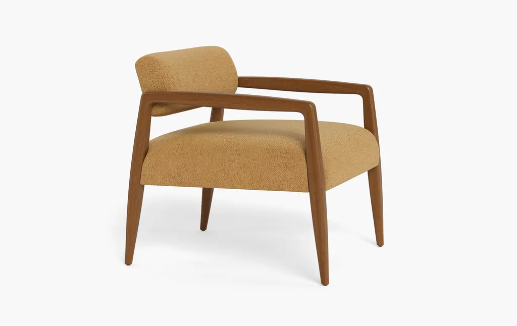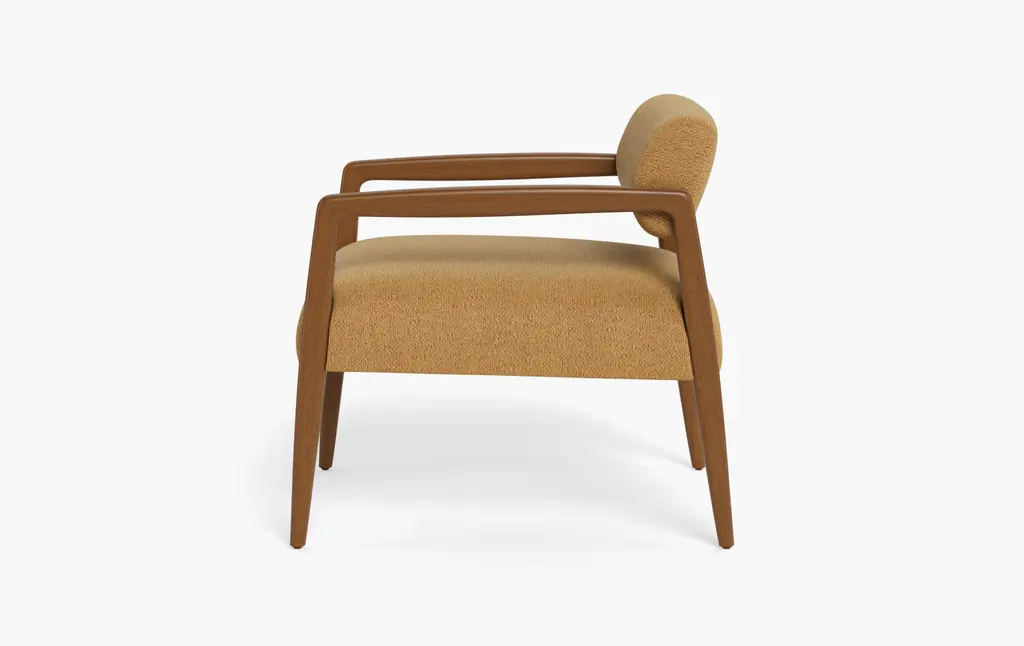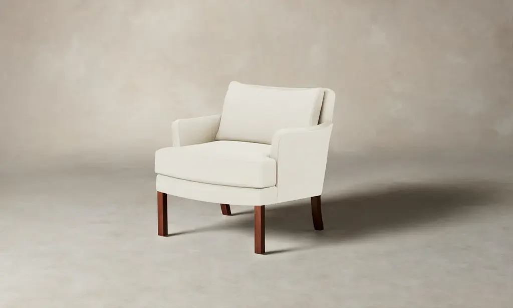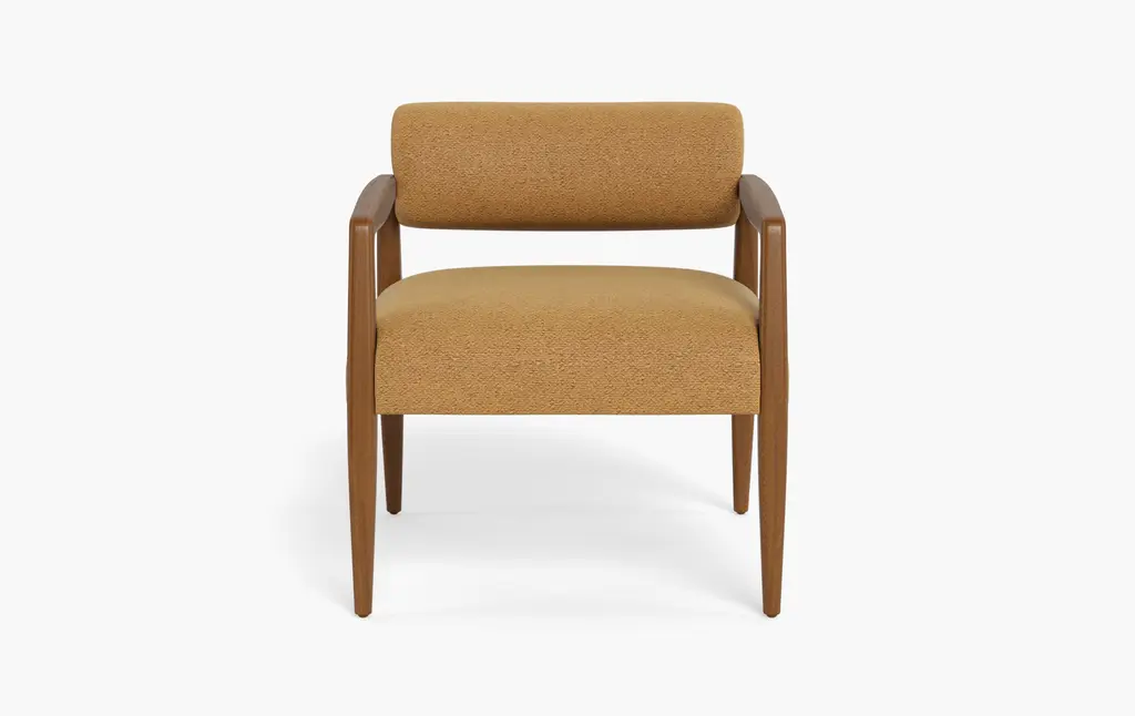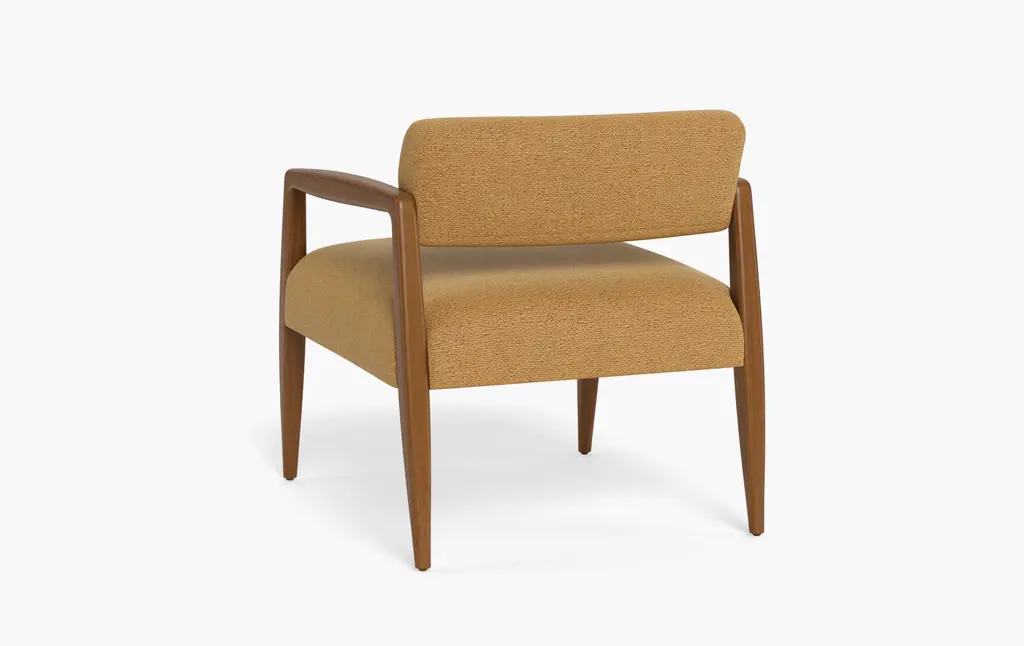 Sculptural and sophisticated, Gwen's thin wood frame meets a thick upholstered seat, balancing an airy look with a comfortable feel. A slight curve in the back and a roomy, loungey seat make for a chair that looks effortlessly cool when paired with other seating or simply on its own.