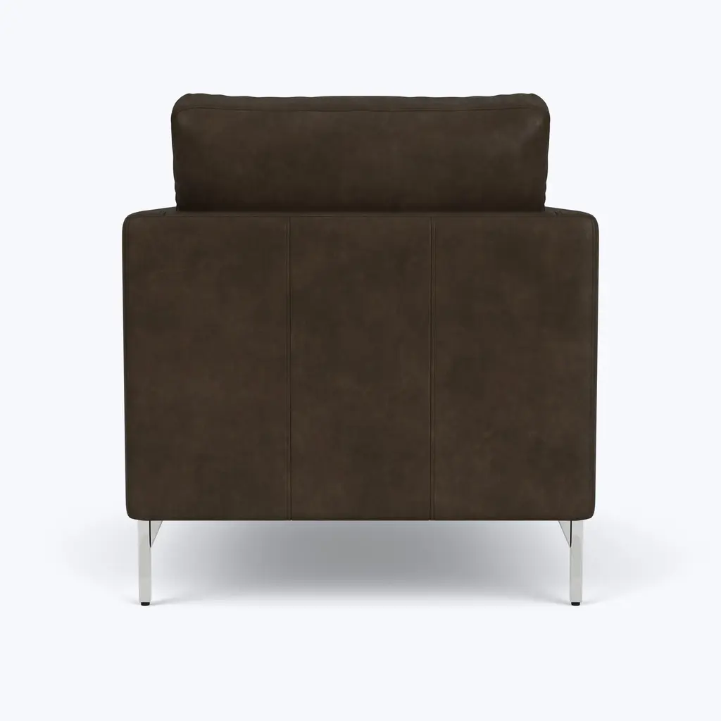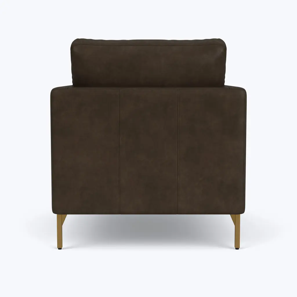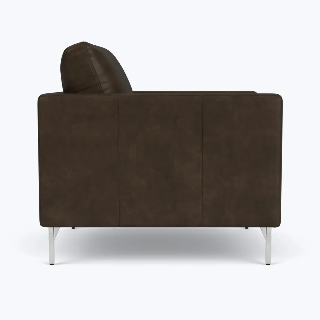 The Hannah Leather Lounge Chair, exclusively from ABC Carpet & Home, embodies the timeless beauty of leather while delivering modern sophistication and comfort. Upholstered in luxurious leather that develops a beautiful patina over time, this chair gains character with use, showcasing natural markings and a soft sheen that enhance its charm. Whether placed in a living room, bedroom, or cozy nook, the Hannah Leather Lounge Chair adds a touch of elegance to any space with its refined design and rich, inviting texture. What sets the Hannah Leather Lounge Chair apart is the unique beauty of its leather upholstery. As the leather ages, it develops a rich patina, gaining softness and depth while highlighting its natural textures and variations. This aging process creates a one-of-a-kind piece that grows more beautiful over time, offering a long-lasting investment in both style and durability. Crafted with a sustainably sourced Goodwood frame, the Hannah Leather Lounge Chair reflects ABC’s commitment to eco-conscious craftsmanship. Its slim track arms and sleek silhouette create a streamlined, contemporary look, while the choice of polished brass or steel legs adds a refined touch. Available in seven premium leather finishes, this chair can be customized to perfectly complement your existing decor, offering both timeless style and luxurious comfort. Designed with comfort in mind, the deep, plush seating makes the Hannah Leather Lounge Chair the perfect spot for relaxing, reading, or entertaining guests. Its elegant design and luxurious leather provide the ideal combination of form and function, making it a versatile addition to any room. Handcrafted to order and delivered to your home within 8-10 weeks, this lounge chair offers a seamless blend of custom design and exceptional craftsmanship. Complete your space by pairing the Hannah Leather Lounge Chair with other pieces from the Hannah Collection, such as the coordinating ottoman or sectional, to create a cohesive and inviting atmosphere. With its modern lines, premium leather, and unparalleled comfort, the Hannah Leather Lounge Chair brings effortless style and lasting elegance to your home.
