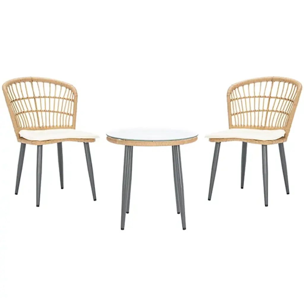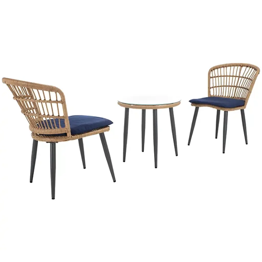 The Harney 3Pc Outdoor Side Chair Set from Alder & Ore features a double-woven PE rattan pattern that creates exceptional tensile strength for lasting support. Weather-resistant steel frames ensure stability while maintaining a light visual profile. The matching end table offers a perfect spot for refreshments or books. Foam-filled polyester cushions provide lasting comfort for extended relaxation. This set brings indoor comfort outside, ideal for both solitary moments and shared conversations, making every outdoor space feel like a private retreat.