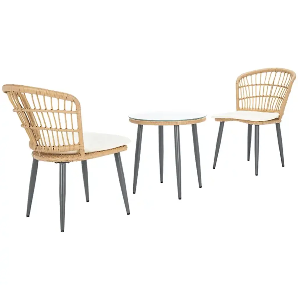 The Harney 3Pc Outdoor Side Chair Set from Alder & Ore features a double-woven PE rattan pattern that creates exceptional tensile strength for lasting support. Weather-resistant steel frames ensure stability while maintaining a light visual profile. The matching end table offers a perfect spot for refreshments or books. Foam-filled polyester cushions provide lasting comfort for extended relaxation. This set brings indoor comfort outside, ideal for both solitary moments and shared conversations, making every outdoor space feel like a private retreat.