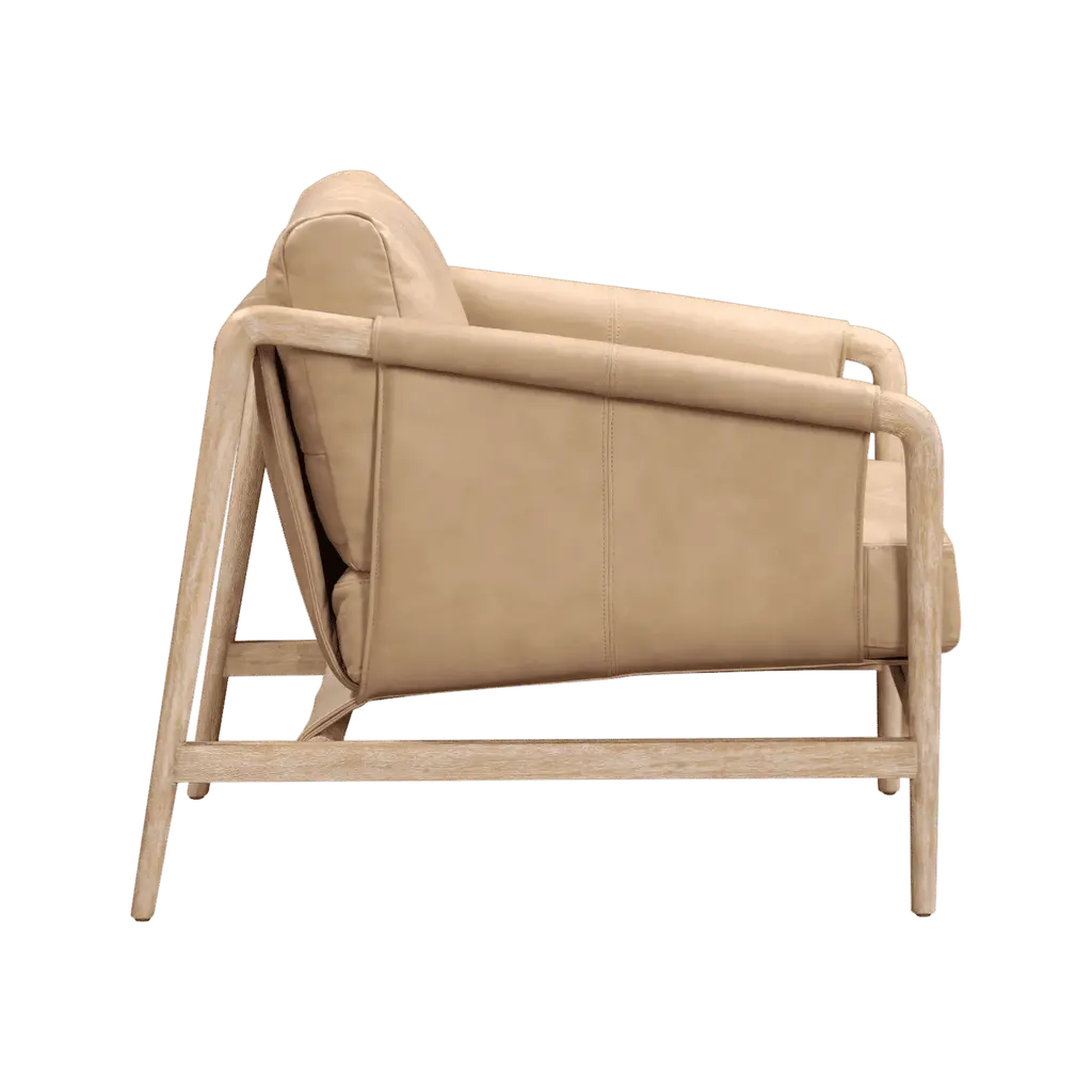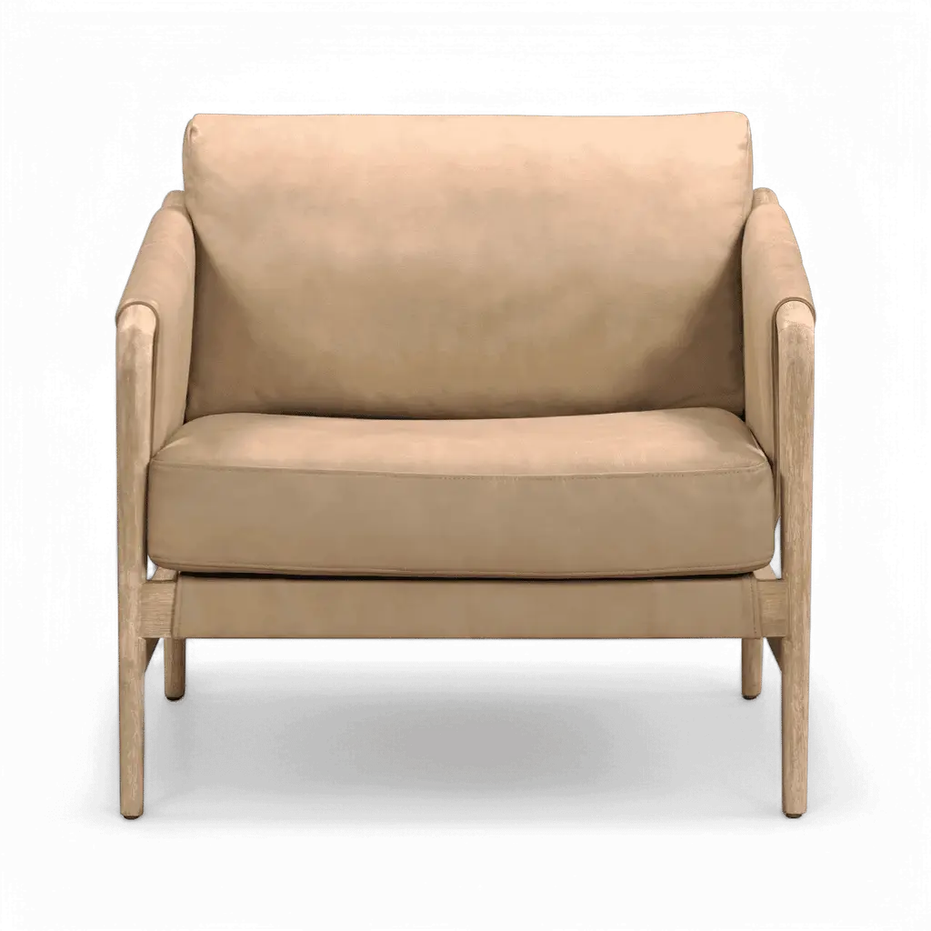 The Haven Genuine Leather Accent Chair provides a touch of sophistication with its warm, tan leather and timeless design. Perfect as a standalone piece or part of a stylish seating arrangement.Leather,Rubberwood | Made with top-grain imported genuine bovine leather | The solid wood frame | High resistance foam