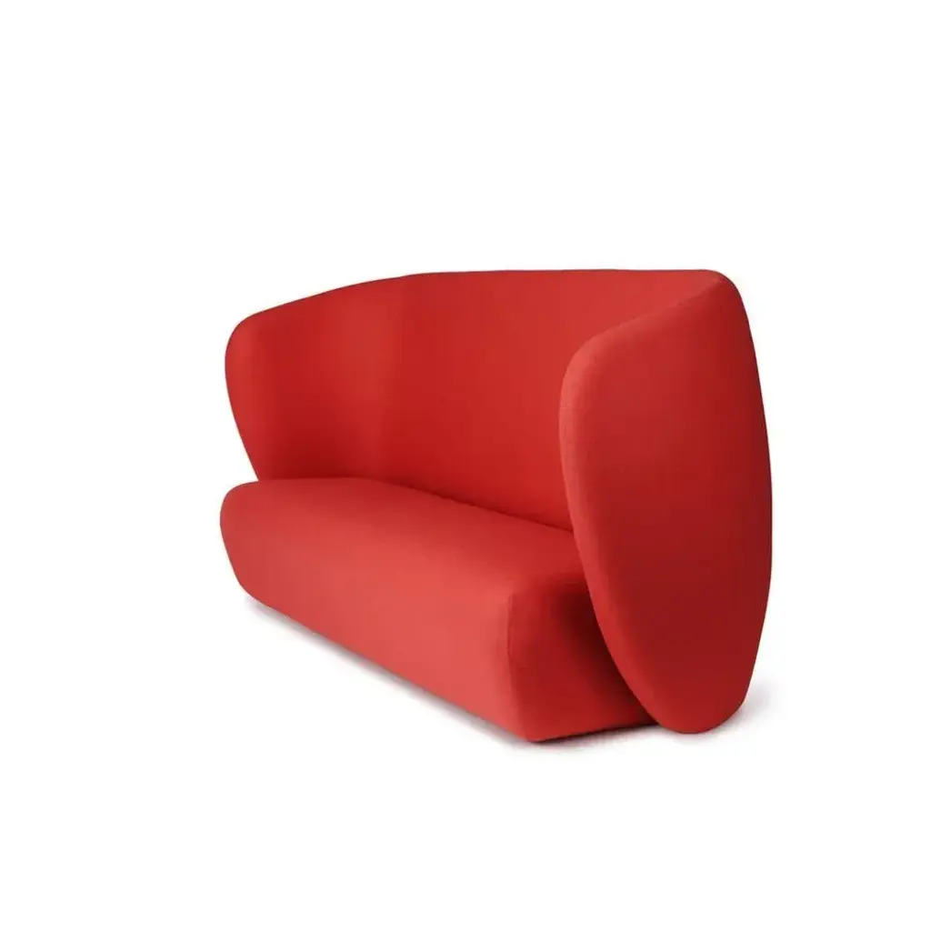 Haven 3 seater apple red by Warm Nordic Dimensions: D 220 x W 84 x H 110/40 cm Material: Textile upholstery, Foam, Spring system, wood Weight: 84 kg Also available in different colours and finishes. Haven is a contemporary sofa with a simple, soft idiom. with its high, embracing back, the sofa creates a sanctuary, where you can sit, gently shielded off from your surroundings, curled up with a book or enjoying an in-depth conversation in your living room. Haven is also ideal for a conference room or lobby, either alone or with two sofas facing each other, thereby expanding the private space. The Haven Lounge Chair and Pouf make the perfect complement. For a perfect holistic impression the Haven range is covered with the exclusive furnishing fabrics, Hero, whose soft, almost felt-like surface complements the sofas organic shape and which is designed by Patricia Urquiola for Kvadrat.