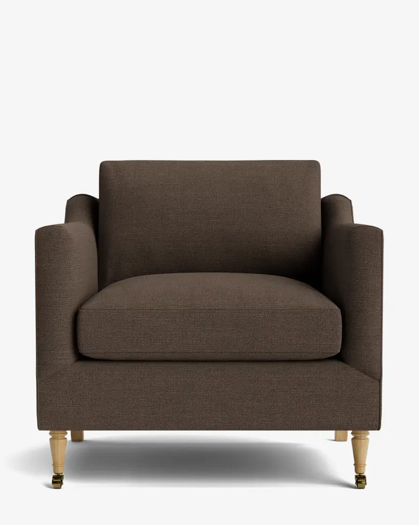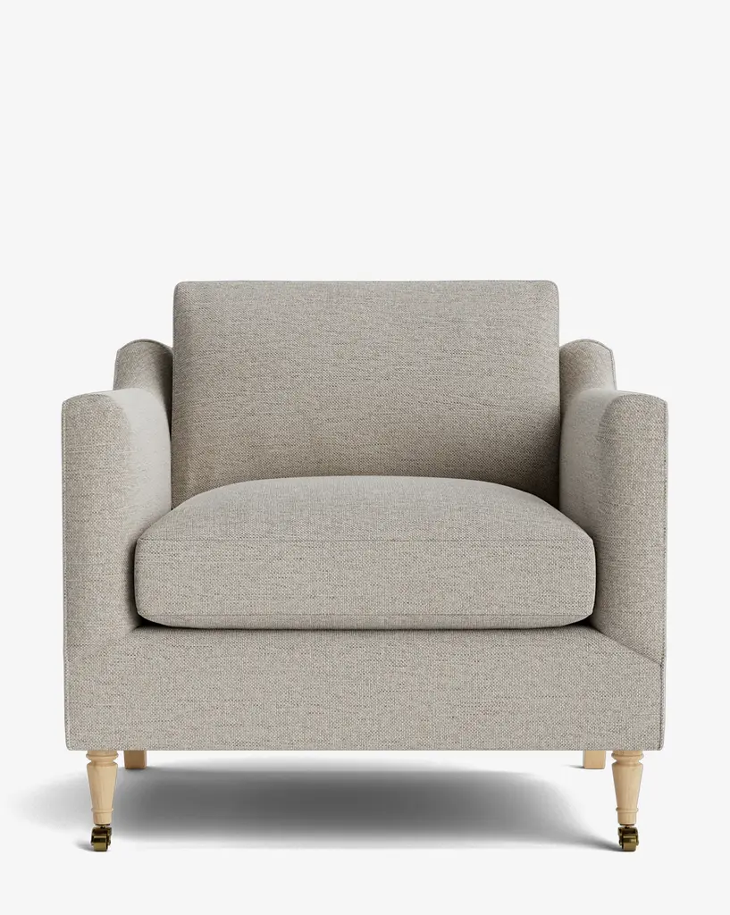 Our Haverford Upholstered Lounge Chair is a masterful combination of contemporary and classic elements. Handcrafted with luxurious comfort in mind, its cushions are filled with a feather blend around a high-strength suspension. The turned maple legs and shaped arms give the lounge chair a traditional, but approachable feel. Customizable in a wide array of fabrics, you can make this made-to-order piece entirely your own.