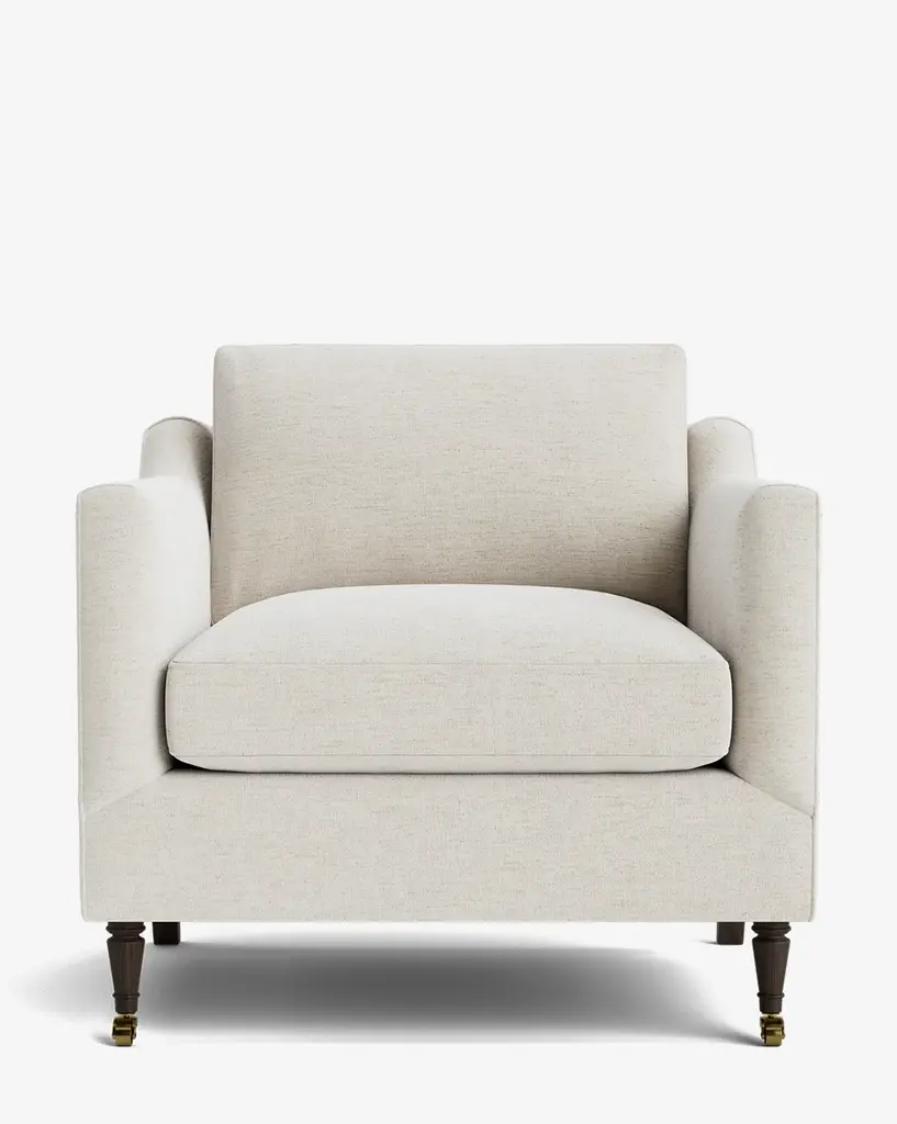 Our Haverford Upholstered Lounge Chair is a masterful combination of contemporary and classic elements. Handcrafted with luxurious comfort in mind, its cushions are filled with a feather blend around a high-strength suspension. The turned maple legs and shaped arms give the lounge chair a traditional, but approachable feel. Customizable in a wide array of fabrics, you can make this made-to-order piece entirely your own.