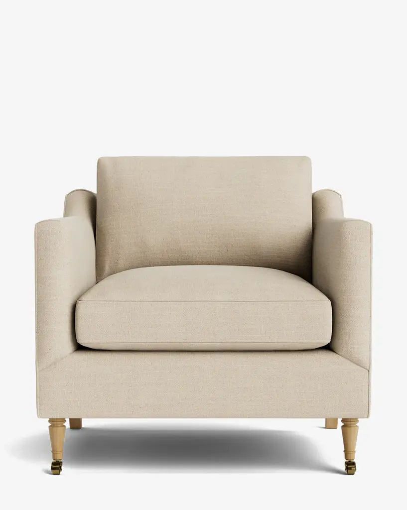 Our Haverford Upholstered Lounge Chair is a masterful combination of contemporary and classic elements. Handcrafted with luxurious comfort in mind, its cushions are filled with a feather blend around a high-strength suspension. The turned maple legs and shaped arms give the lounge chair a traditional, but approachable feel. Customizable in a wide array of fabrics, you can make this made-to-order piece entirely your own.