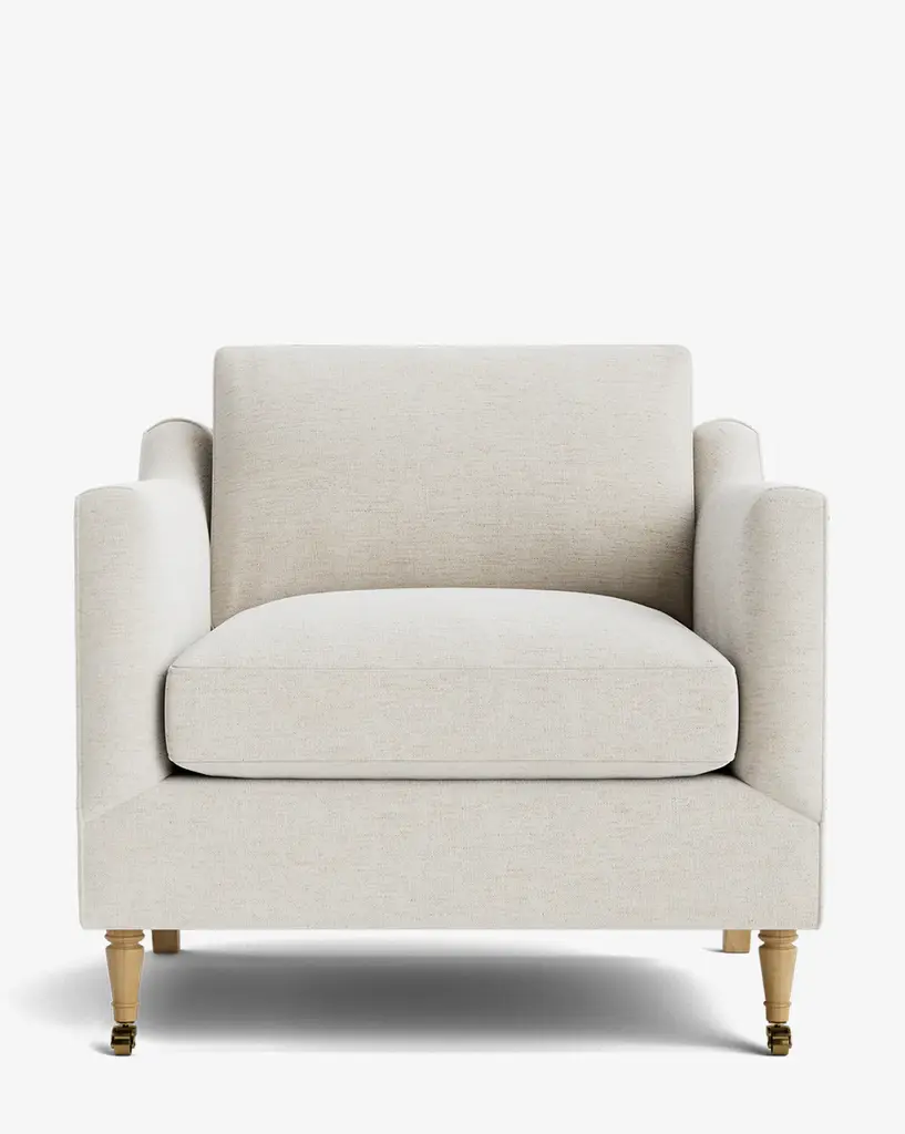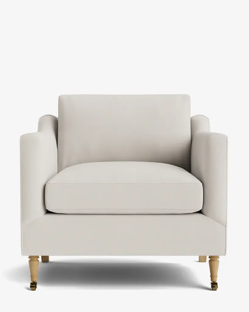 Our Haverford Upholstered Lounge Chair is a masterful combination of contemporary and classic elements. Handcrafted with luxurious comfort in mind, its cushions are filled with a feather blend around a high-strength suspension. The turned maple legs and shaped arms give the lounge chair a traditional, but approachable feel. Customizable in a wide array of fabrics, you can make this made-to-order piece entirely your own.