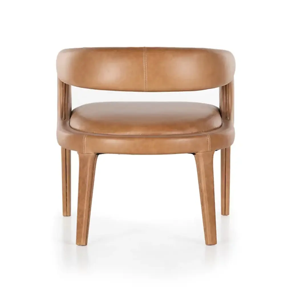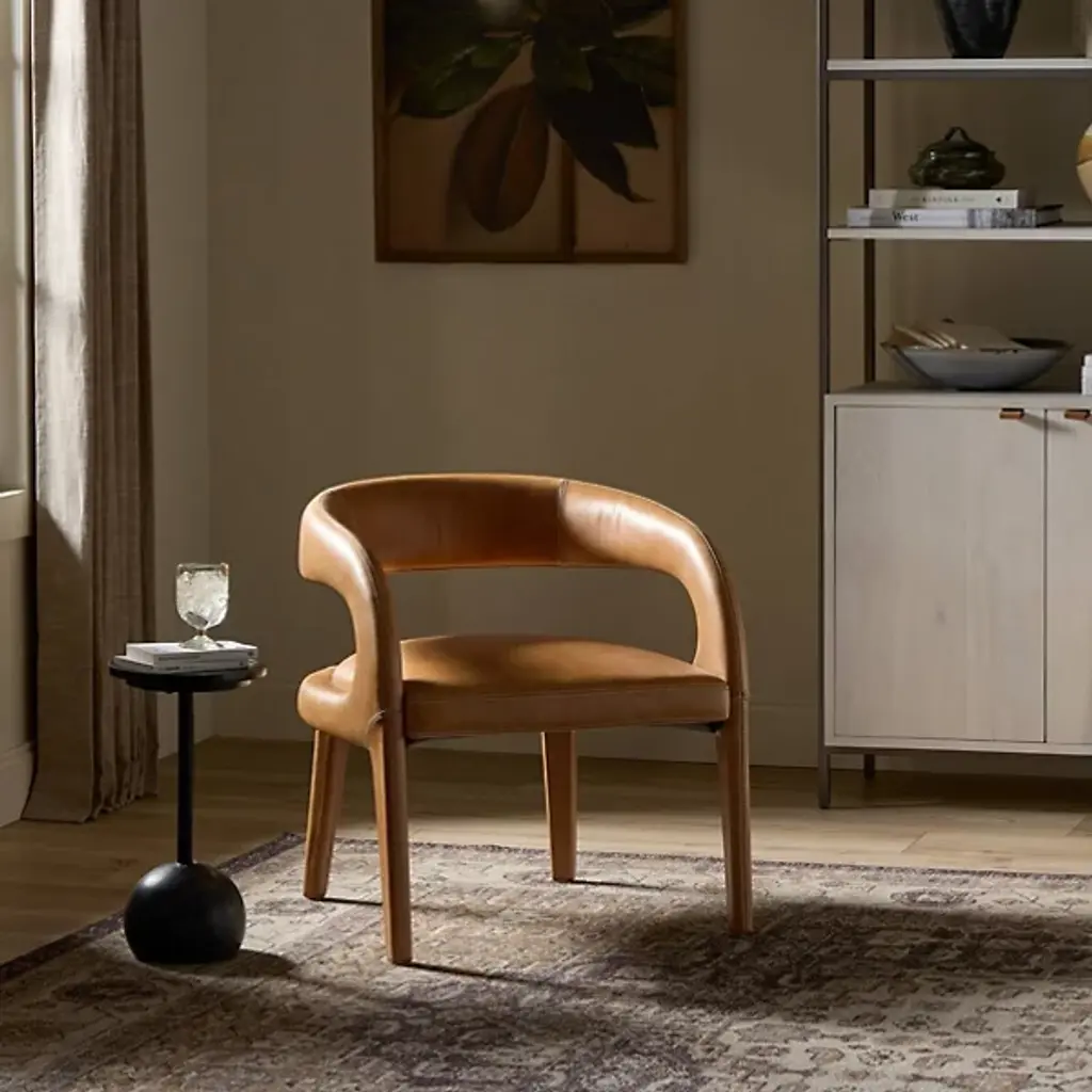 Beautifully curved and thoughtfully sculpted, the Hawkins Accent Chair from Four Hands brings a unique silhouette and inviting presence to any space it adorns. Upholstered in rich top-grain leather, it offers both modern charm and Scandinavian design. A sturdy poplar plywood frame ensures lasting support, while the cushions, filled with plush polyurethane foam and soft polyester fiber, provide maximum comfort throughout every meal and gathering.