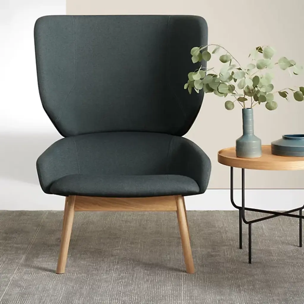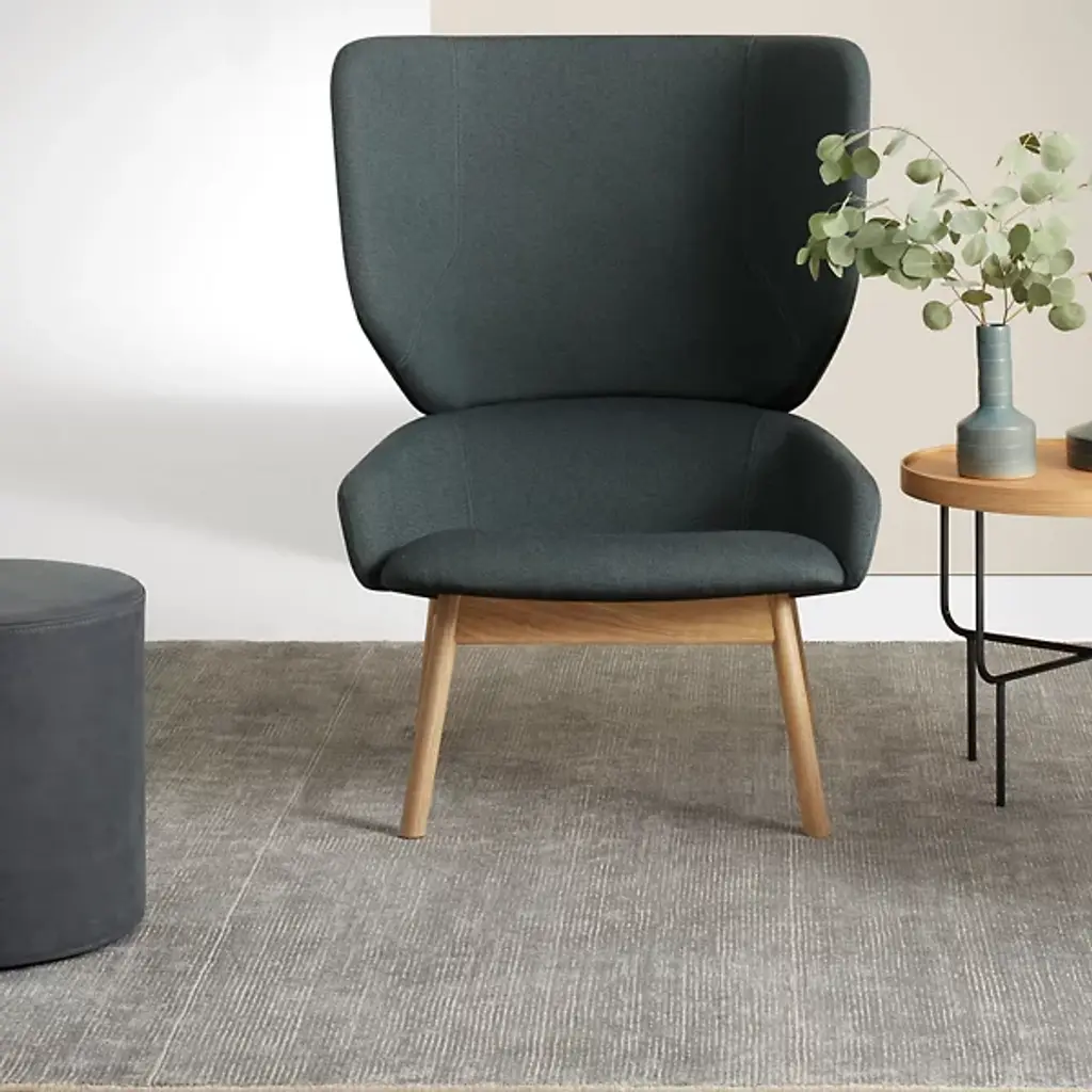 The Heads Up Lounge Chair is a design to envelop and secure a comfortable and relaxing environment. It contains an astounding appearance and combines clean smooth curves with an upholstered silhouette, and made of a variety of durable fabrics. It is pleasing to the eye yet very comfortable once settled in it. The seat is supported by a solid wood base giving the materials a nice contrast and it comes in a variety of fabrics. The Heads Up Lounge Chair will make a remarkable addition to any home or residential setting.