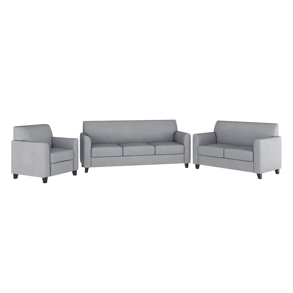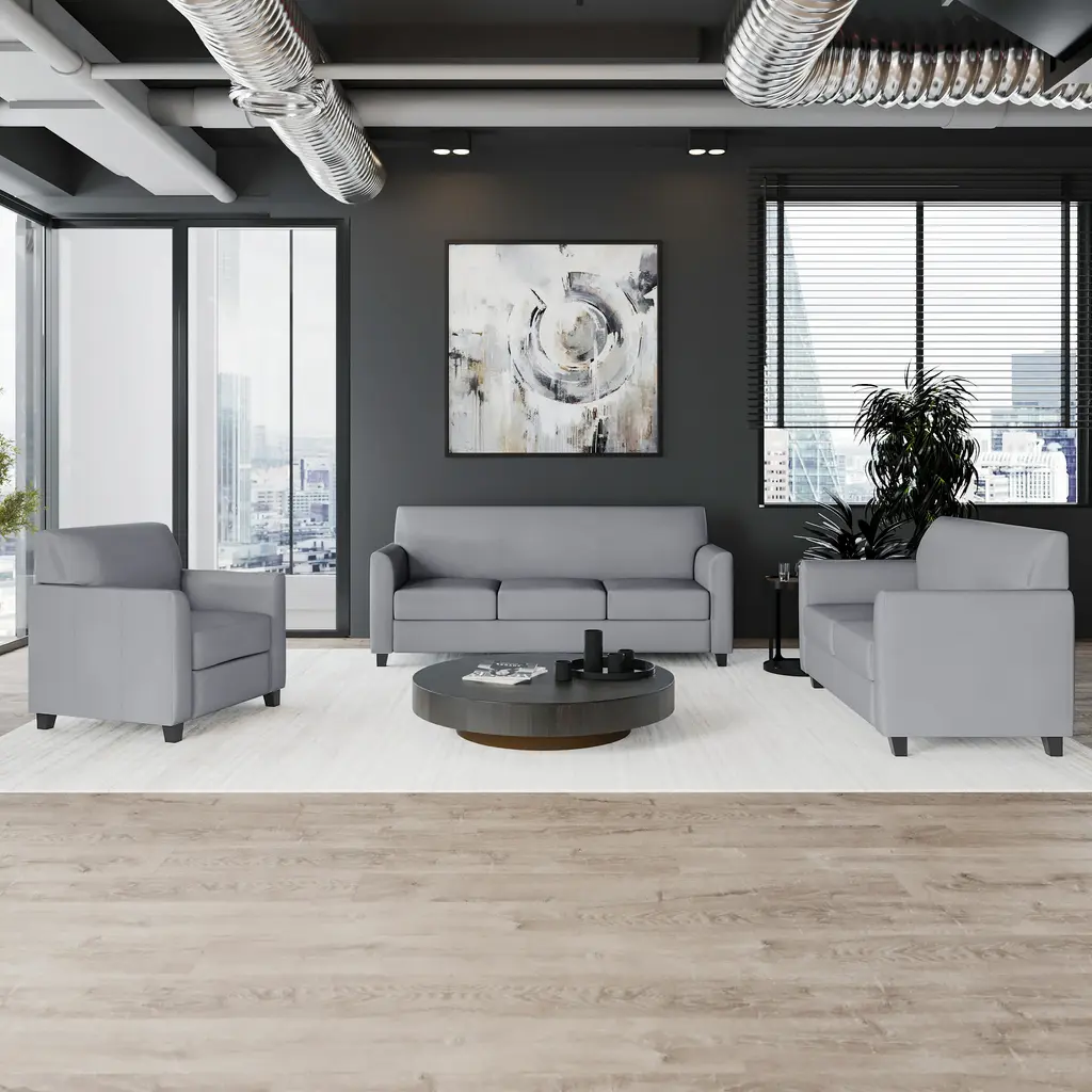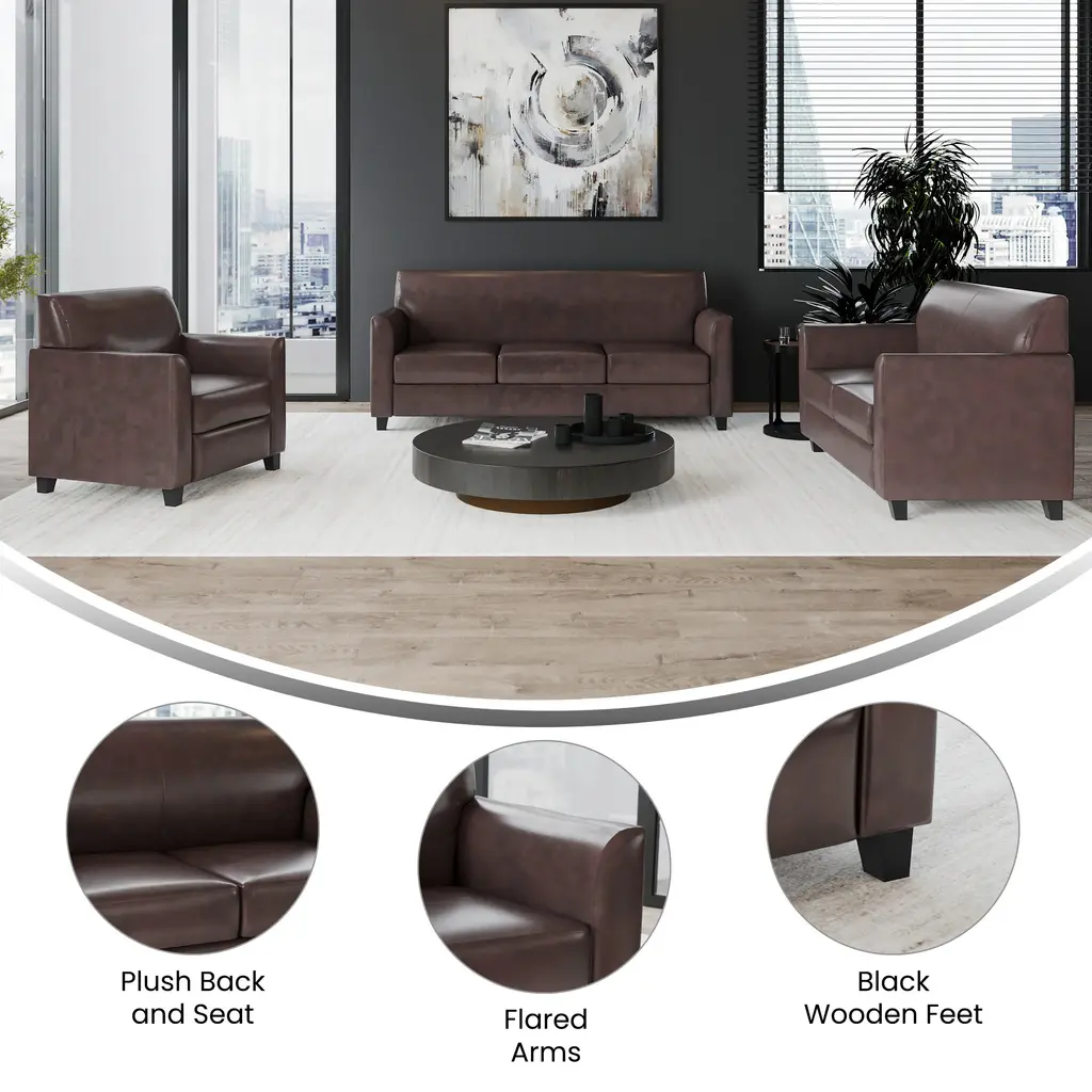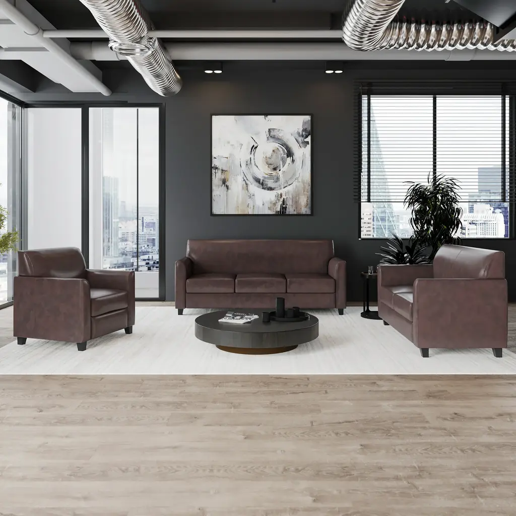 This collection will transform your reception area. This set will make an ideal choice in the office and as waiting room seating. The contemporary design of this furniture adapts in several different settings. This set features comfortable cushions, flared arms and raised feet. Thanks to a sturdy hardwood frame and black wood feet, each chair from this set is strong enough for both residential and office settings. Not only will this set fit in a professional environment, but will add a modern look to your home.