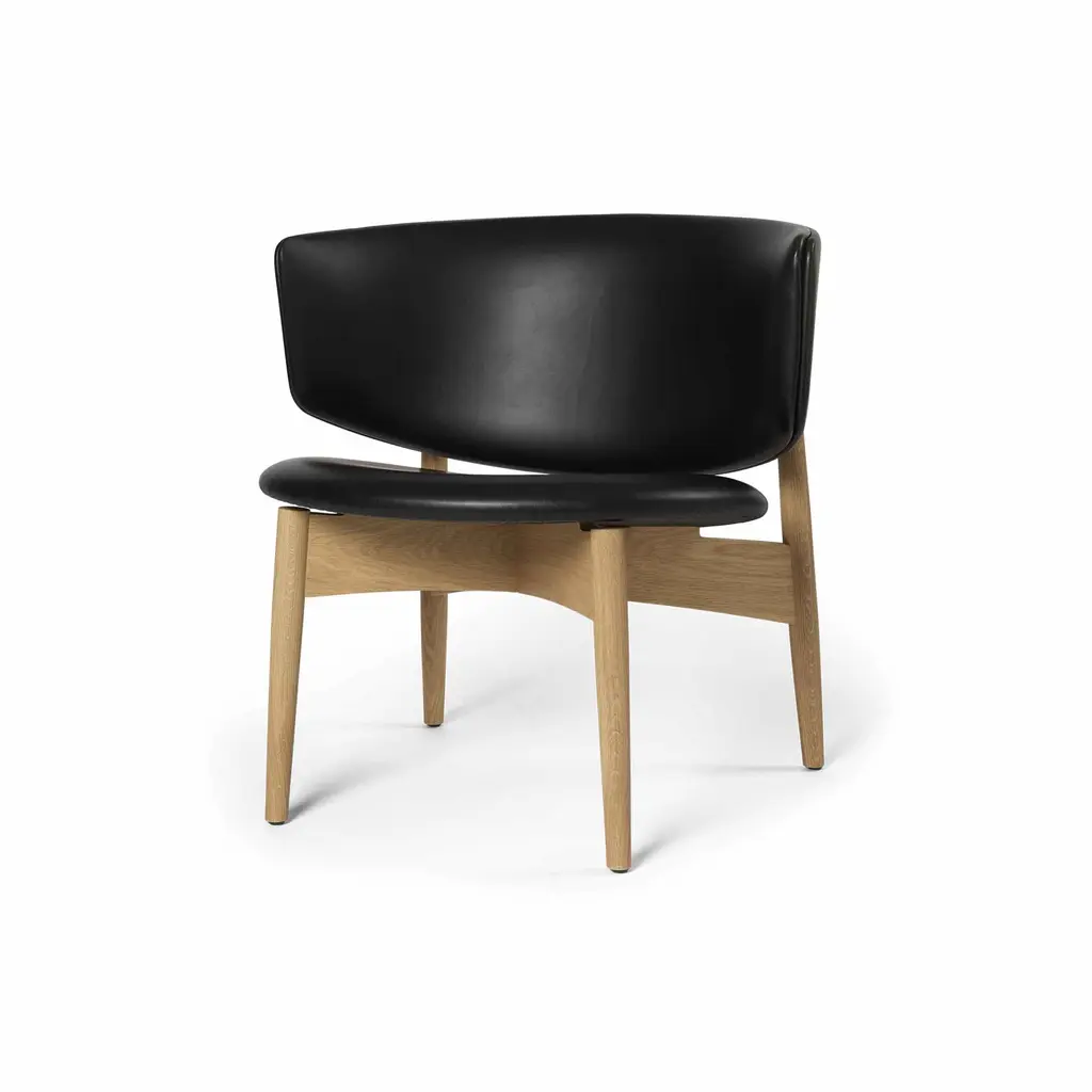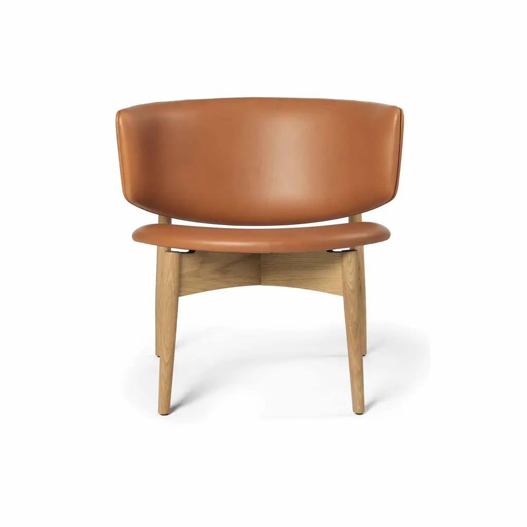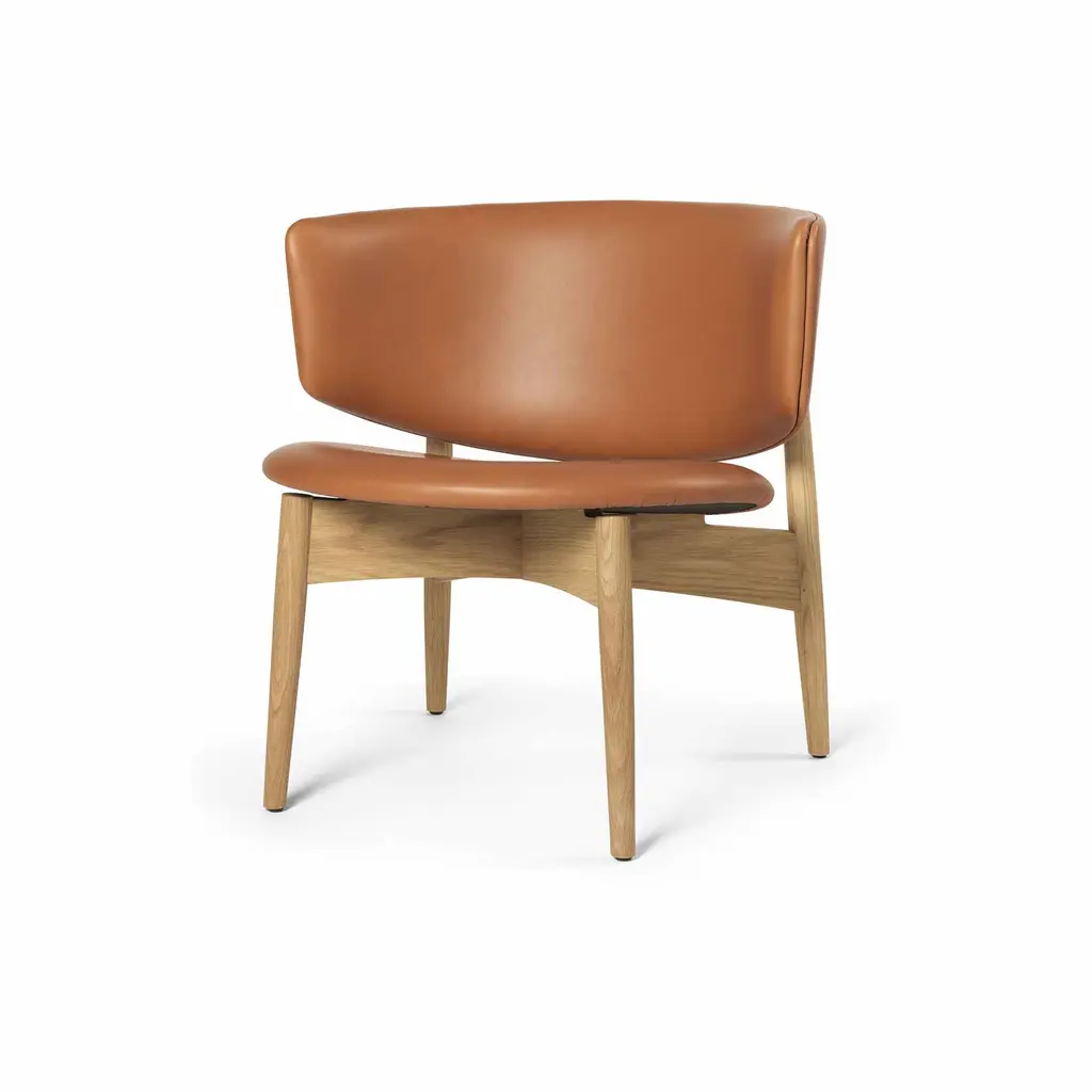 Sink into the Herman Lounge Chair and enjoy the feeling of being embraced in a cozy hug as you take a moment to relax – at the end of a long day, on a rainy afternoon, or anytime you want to recharge your batteries. Designed by Danish design firm Herman Studio, this elegant lounge chair features a wide, curving backrest that surrounds your body and provides perfect support. The circular seat is subtly angled for maximum comfort – paired with the low profile of the chair, it translates into a supremely comfortable lounging experience. As for the frame, it’s crafted from FSC Mix-certified solid oak and features tapered and angled legs. The back legs rise to meet the backrest, creating a beautiful play between the natural textures of wood and the warmth of leather. The Ferm Living Herman Lounge Chair comes with high-quality aniline leather upholstery: Envy by Sørensen Leather. A great choice for a living room, bedroom, or home office.
