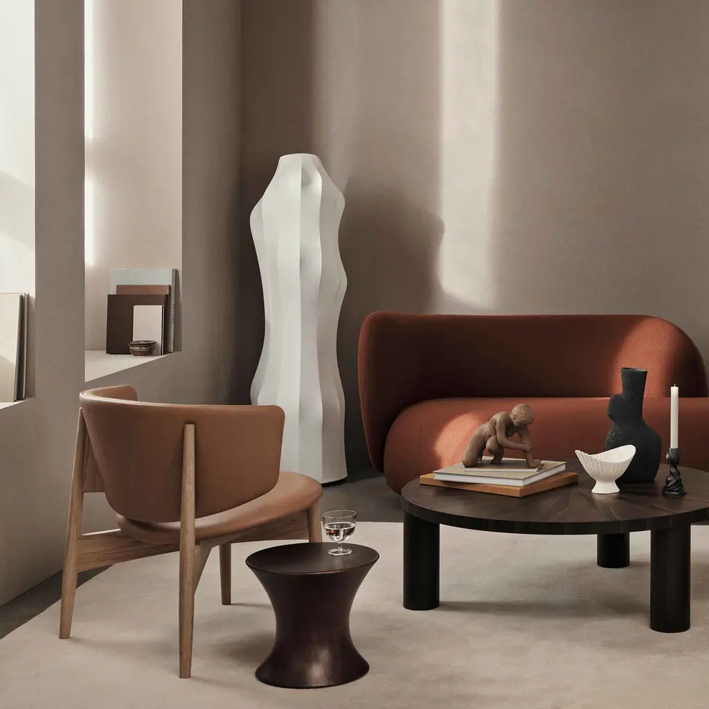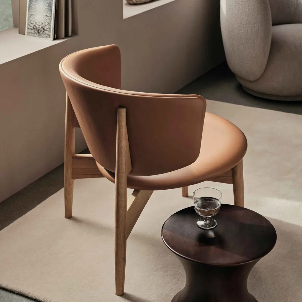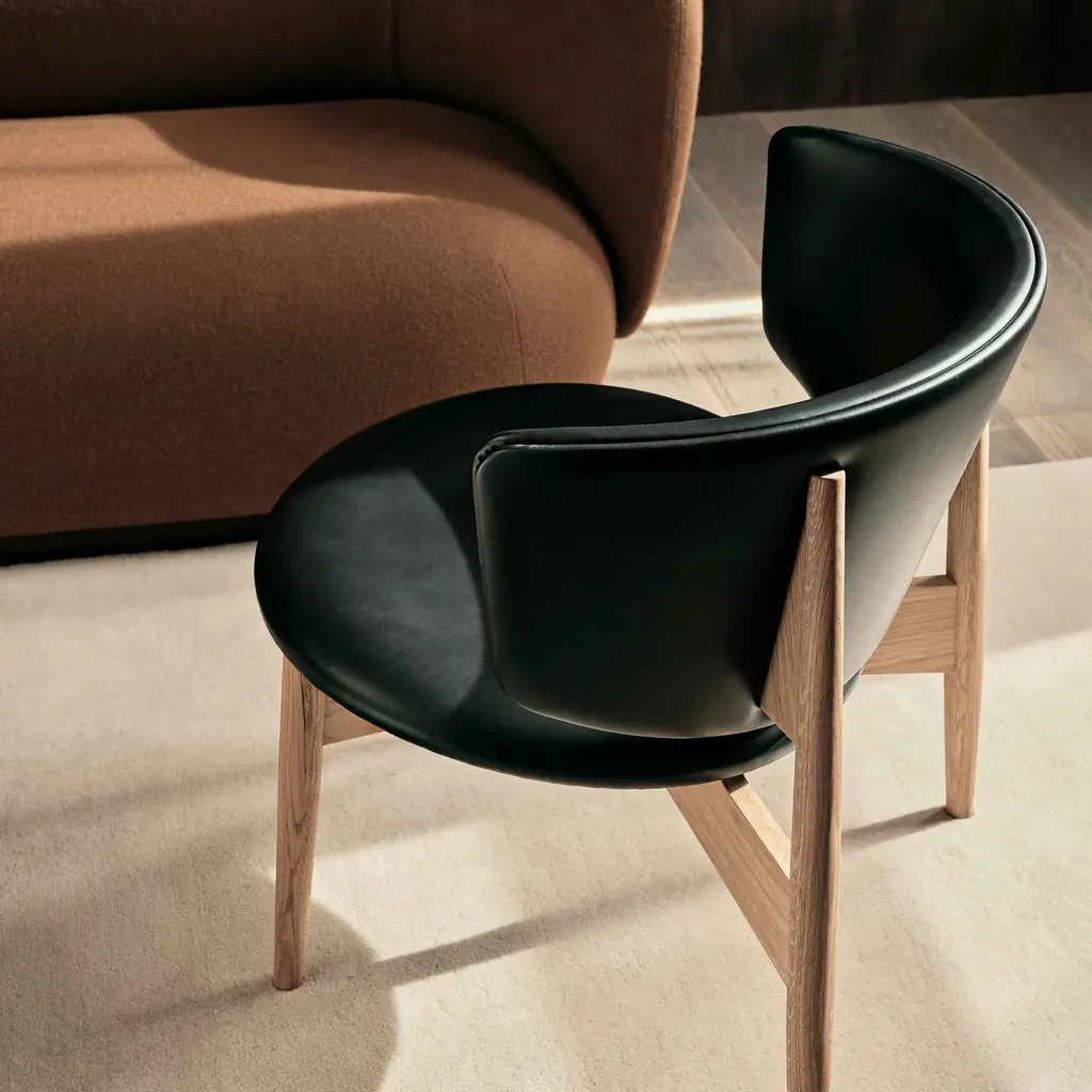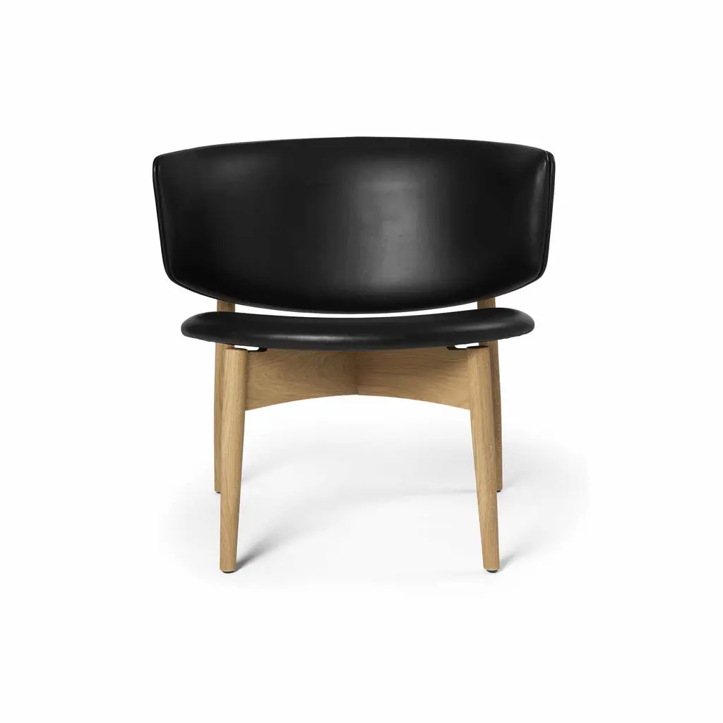 Sink into the Herman Lounge Chair and enjoy the feeling of being embraced in a cozy hug as you take a moment to relax – at the end of a long day, on a rainy afternoon, or anytime you want to recharge your batteries. Designed by Danish design firm Herman Studio, this elegant lounge chair features a wide, curving backrest that surrounds your body and provides perfect support. The circular seat is subtly angled for maximum comfort – paired with the low profile of the chair, it translates into a supremely comfortable lounging experience. As for the frame, it’s crafted from FSC Mix-certified solid oak and features tapered and angled legs. The back legs rise to meet the backrest, creating a beautiful play between the natural textures of wood and the warmth of leather. The Ferm Living Herman Lounge Chair comes with high-quality aniline leather upholstery: Envy by Sørensen Leather. A great choice for a living room, bedroom, or home office.