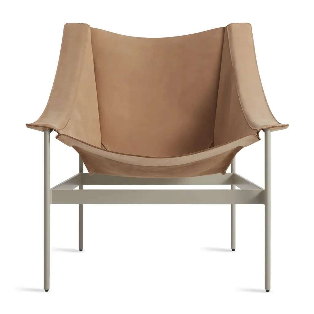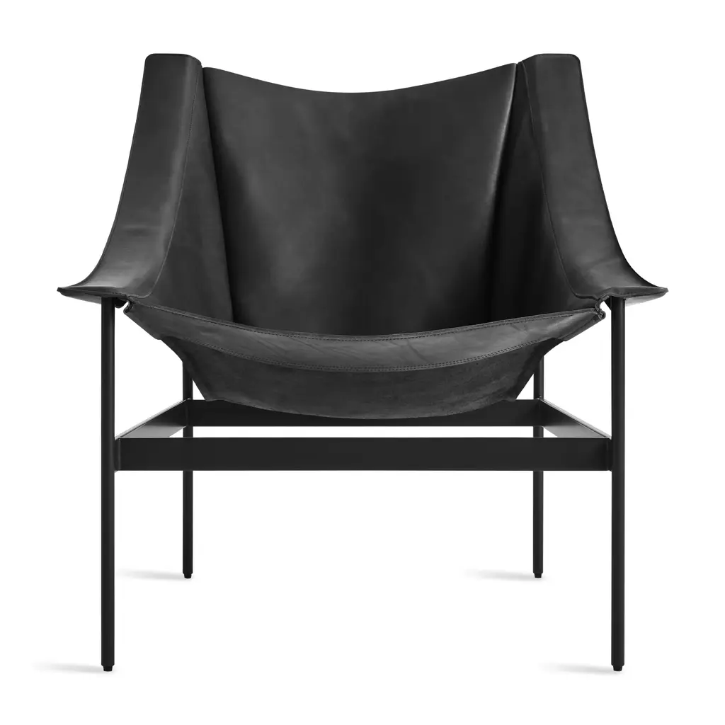 Your new luxe, leather lounge chair design With a swooping frame and elegantly angled form, the Heyday Lounge Chair from Blu Dot offers a suspended design ready to cradle you in comfort all day long. Featuring a powder-coated steel frame and a full grain leather seat, this lounge chair operates like a hammock, while showcasing smooth sophistication. Ideal as a striking accent chair in your favorite lounge or office space, this seat also provides artistic enhancement while creating the perfect reading nook in a master suite or guest sleeping area. Top with a cashmere blanket and accent with a fabulous floor lamp for the best in contemporary design. Why We Love It: Features