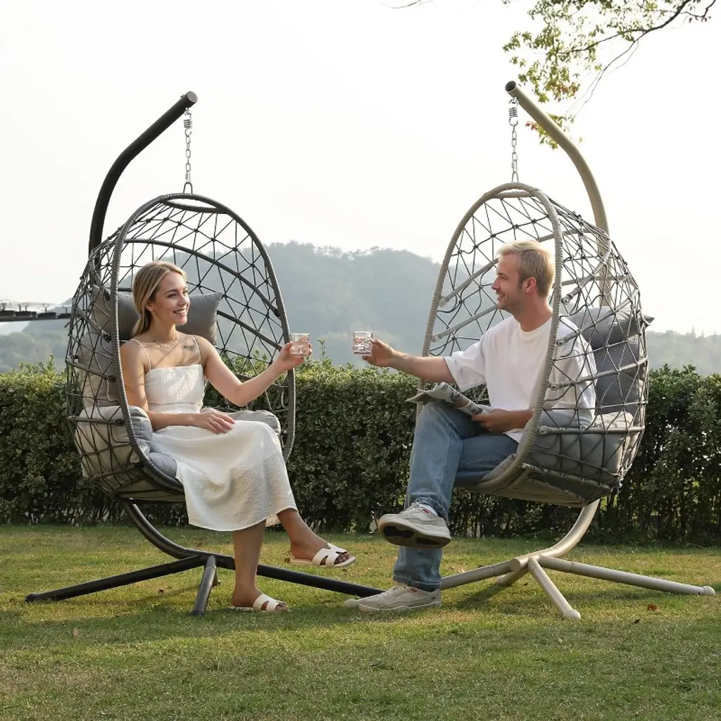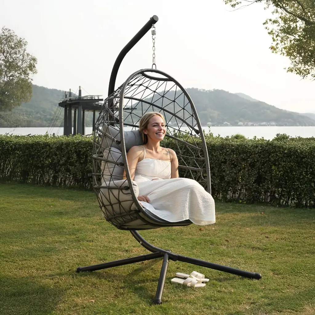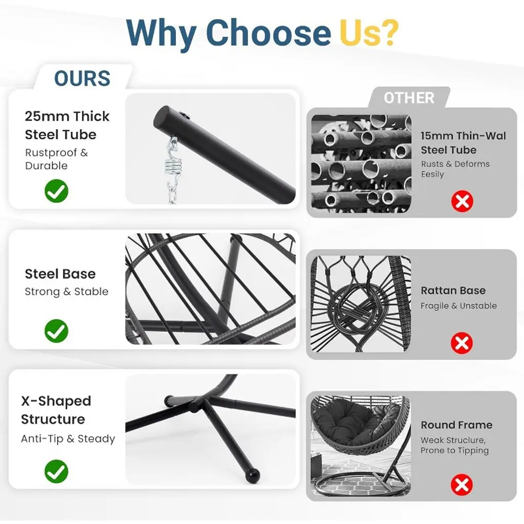 Heynemo Hanging Egg Chair Outdoor Swing Chair With Stand, Hammock Chair Indoor, Patio Boho Wicker Hanging Chair With 350lbs Capacity, Black & Gray