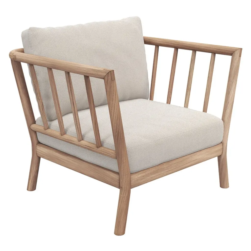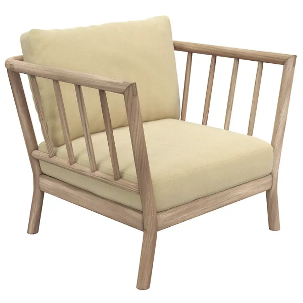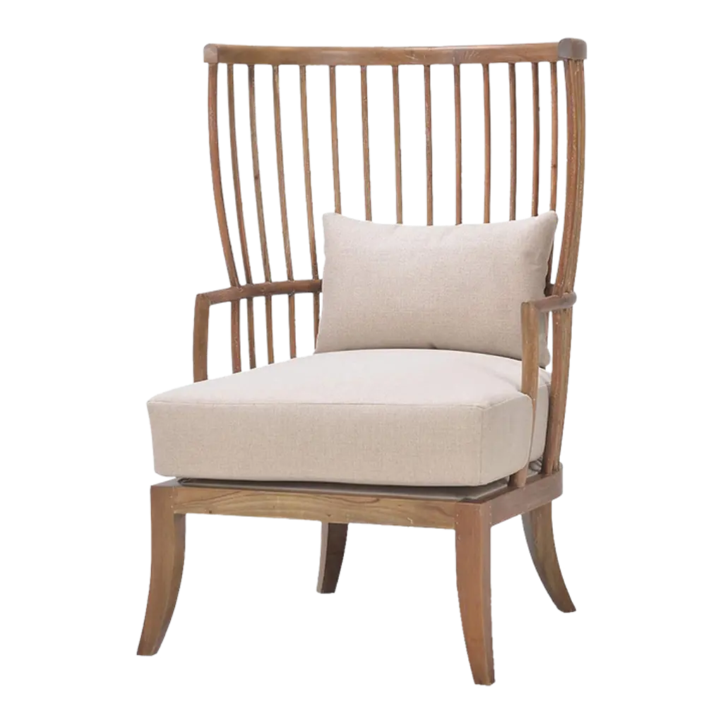 A striking blend of traditional craftsmanship and modern comfort. This elegant armchair features a distinctive high spindle backrest crafted from solid wood, providing both durability and a sophisticated aesthetic. The frame, finished in a warm, straw wash finish, exudes timeless charm and rustic elegance.The plush seat and back cushions are upholstered in premium neutral performance fabric, offering superior comfort and easy maintenance. The ergonomic design ensures optimal support, making it an ideal addition to living rooms, bedrooms, or cozy reading nooks.Dimensions: 31" W x 30" D x 45" HSeat - 18" HCustom finish options are also available. Contact us to learn more.Lead Time is 20 - 24 weeks for a custom chair.