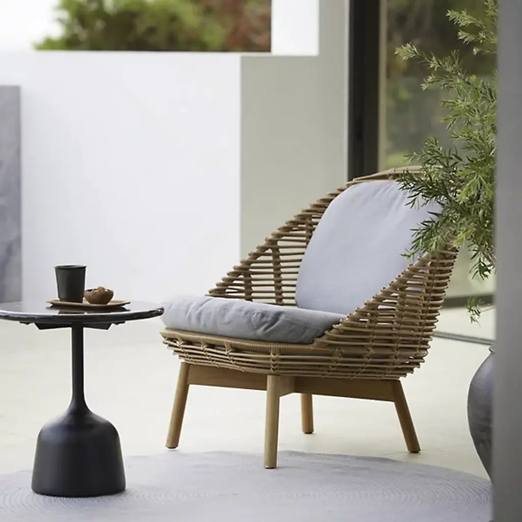 The Hive Lounge Chair With Teak Legs from Cane-line is designed with both style and postural support in mind. This lounge chair features a ribbed design and contoured shape, providing optimal comfort for your back and body. Whether you're enjoying a leisurely afternoon read or entertaining guests outdoors, Hive facilitates relaxation. Crafted from high-quality Cane-line Weave, your chair exudes durability and sophistication. The aluminum frame offers stability, while the teak legs add warmth and elegance.