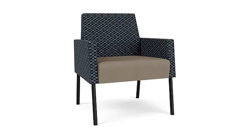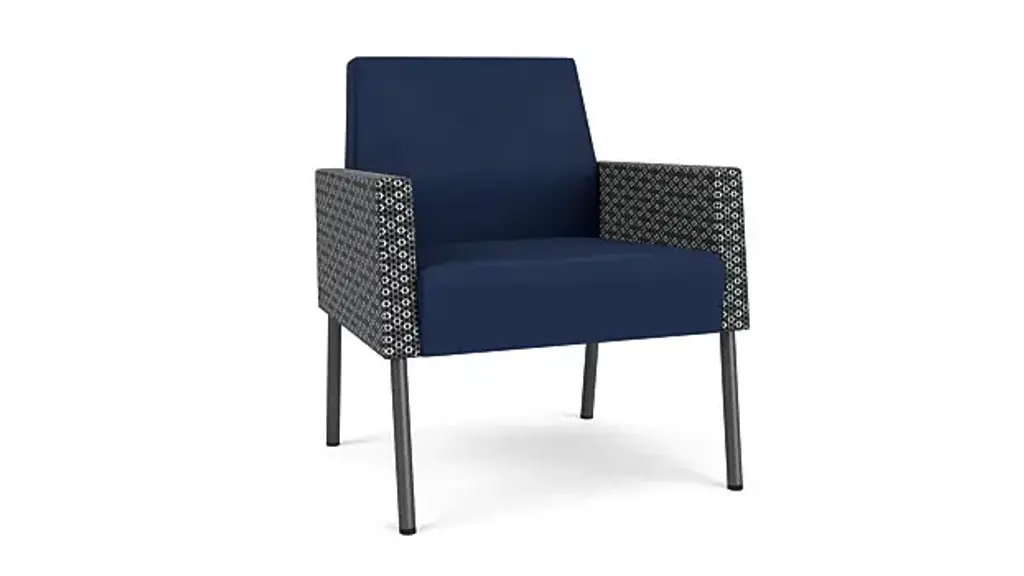 The Mystic Lounge guest chair with its sophisticated, tailored look, offers the ideal balance of style, function, and value for reception areas, home office and lounge seating applications. Heavy-duty construction with comfortable upholstered cushions and steel legs. Seat features environmentally friendly, durable and comfortable 2.6 density soy based foam, and a Matrex seat support system for long-life sitting comfort. Fully Upholstered panel arms and refined tapered back. Wall-saver design to prevent marks and damage to walls. Designed for high-use reception, lounge and pull-up applications. Steel frame is easy to clean and can withstand years of harsh cleansers. Available in several stain-resistant polyurethane and fabric upholstery options. Ships ready for easy assembly.