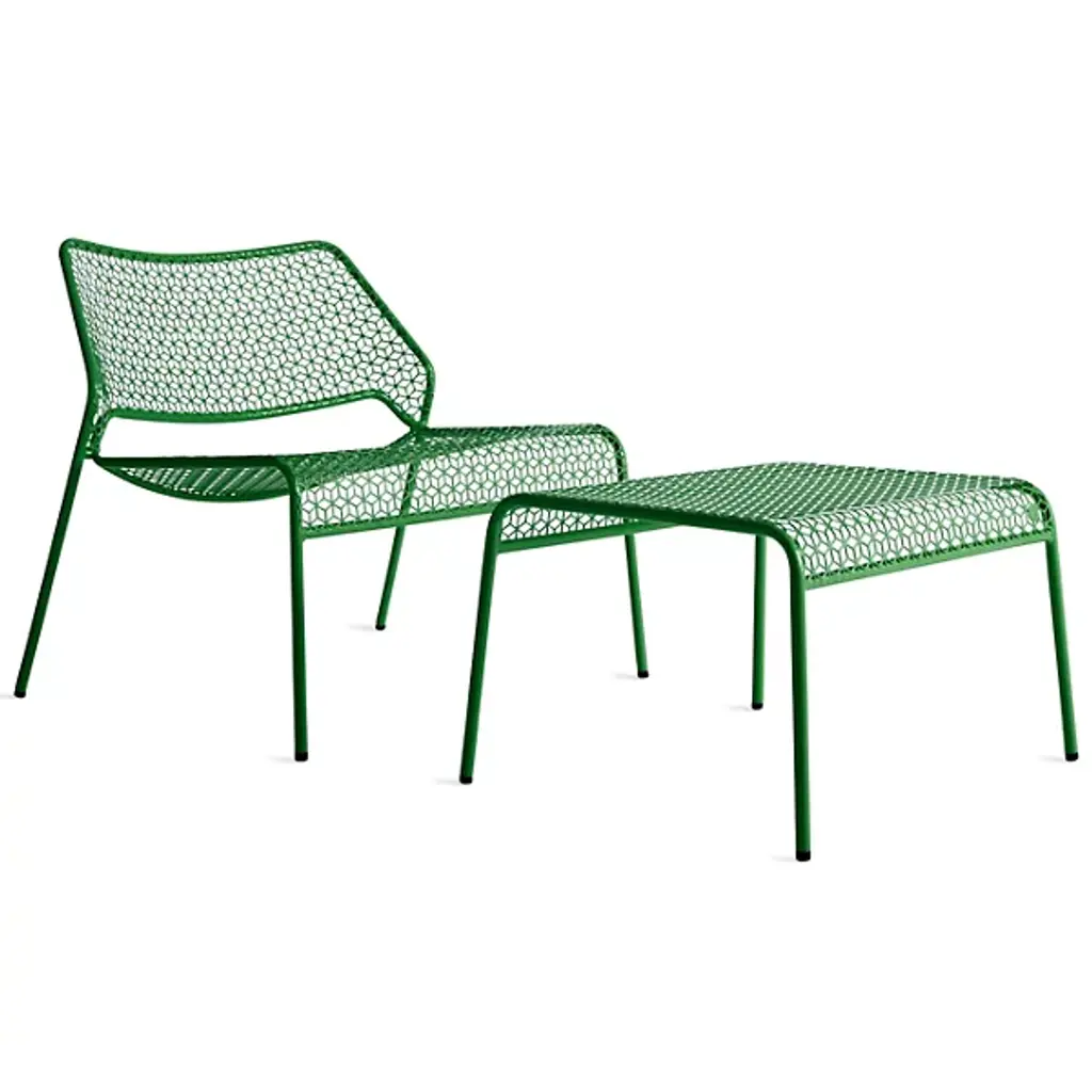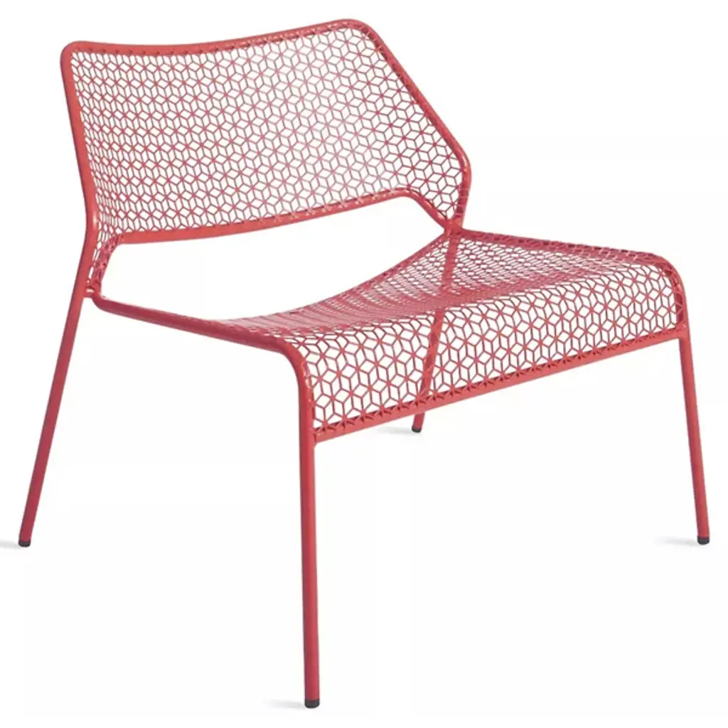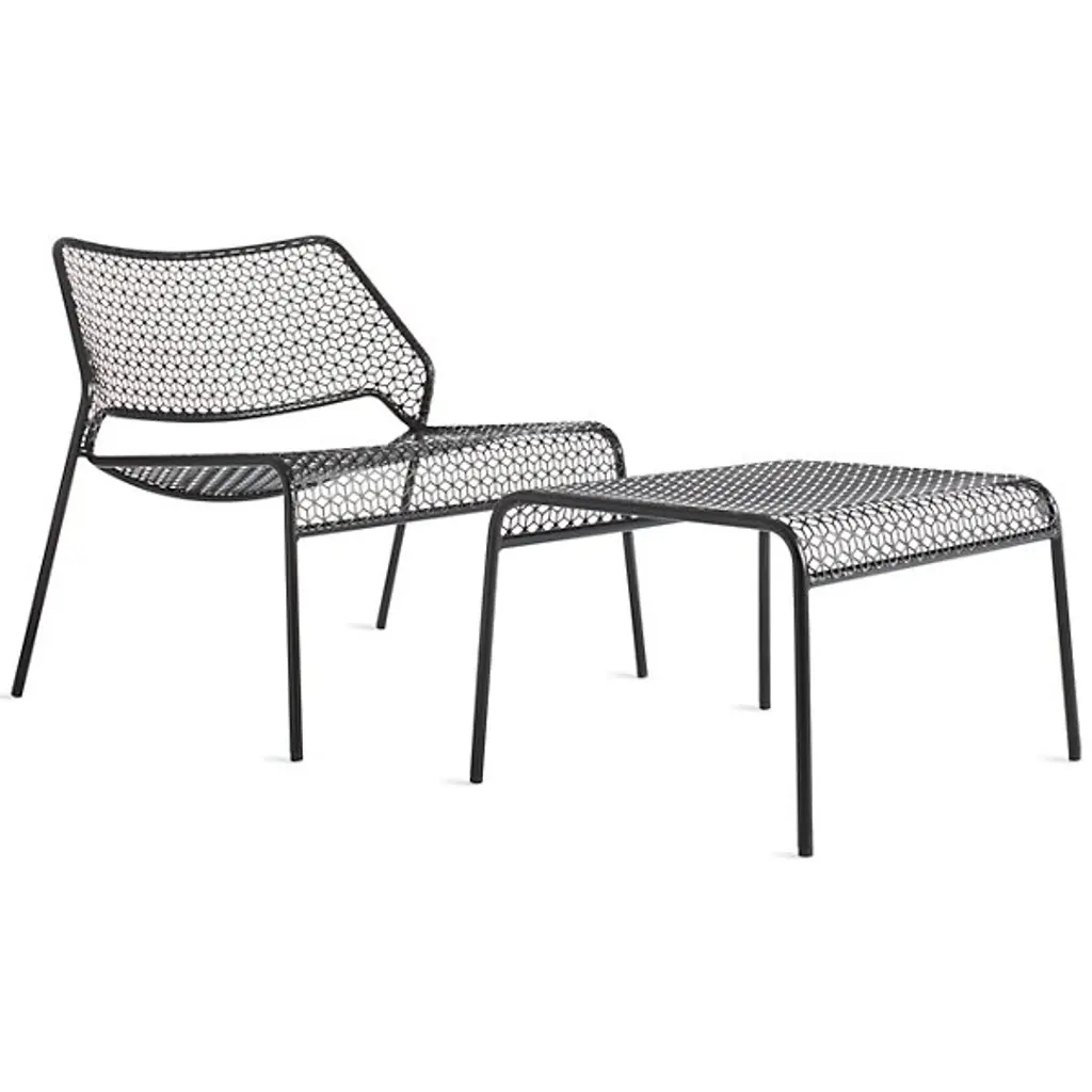A super-cool update on classic rattan furniture. The Blu Dot Hot Mesh Lounge Chair features a uniquely lacy geometric pattern made by perforating steel. A durable powder coat enhances the pattern and protects the metal for long-lasting use indoors and out. The Hot Mesh Lounge Chair is stackable, making it easy to put away during the cold winter months if you're using them outdoors. There's also a matching ottoman (sold separately) that completes this chair's relaxing potential.