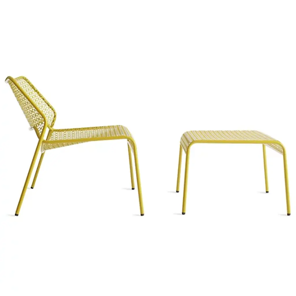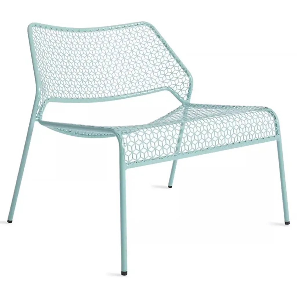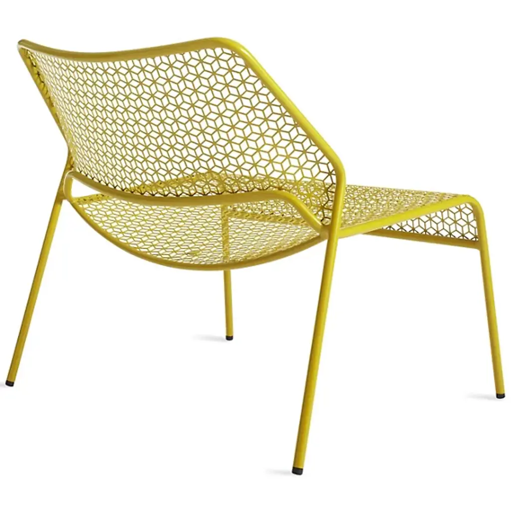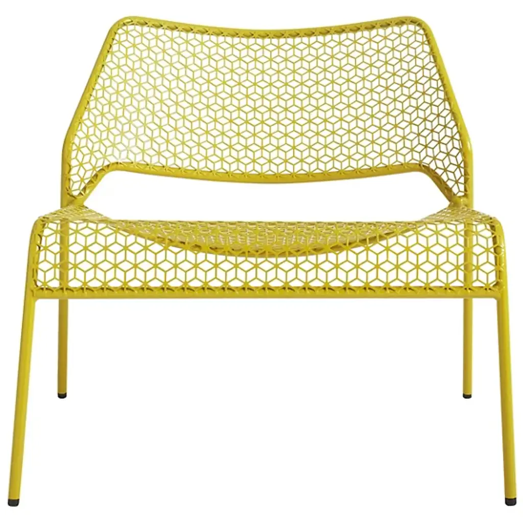 A super-cool update on classic rattan furniture. The Blu Dot Hot Mesh Lounge Chair features a uniquely lacy geometric pattern made by perforating steel. A durable powder coat enhances the pattern and protects the metal for long-lasting use indoors and out. The Hot Mesh Lounge Chair is stackable, making it easy to put away during the cold winter months if you're using them outdoors. There's also a matching ottoman (sold separately) that completes this chair's relaxing potential.