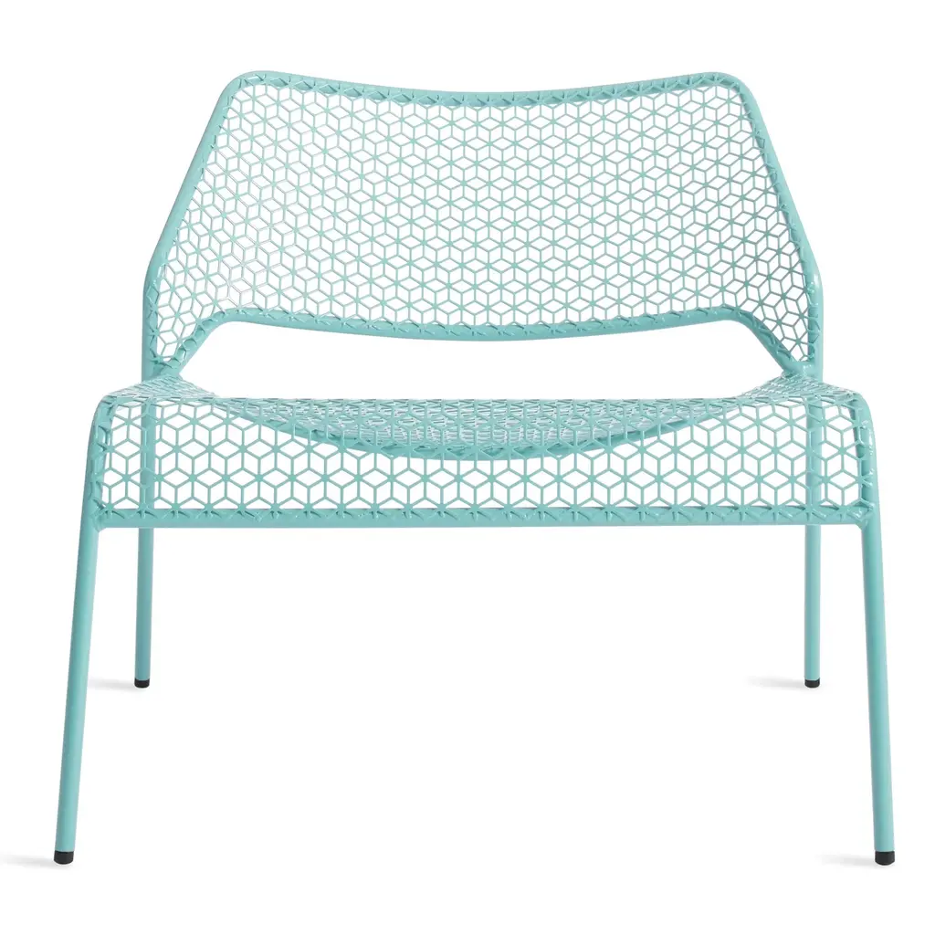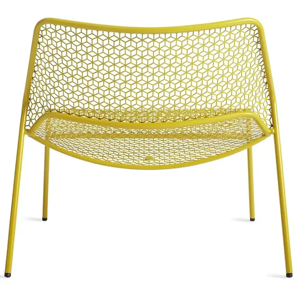 A super-cool update on classic rattan furniture. The Blu Dot Hot Mesh Lounge Chair features a uniquely lacy geometric pattern made by perforating steel. A durable powder coat enhances the pattern and protects the metal for long-lasting use indoors and out. The Hot Mesh Lounge Chair is stackable, making it easy to put away during the cold winter months if you're using them outdoors. There's also a matching ottoman (sold separately) that completes this chair's relaxing potential.