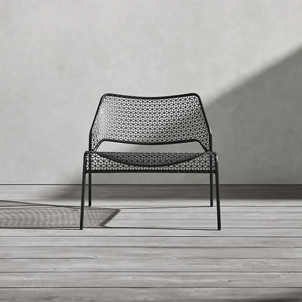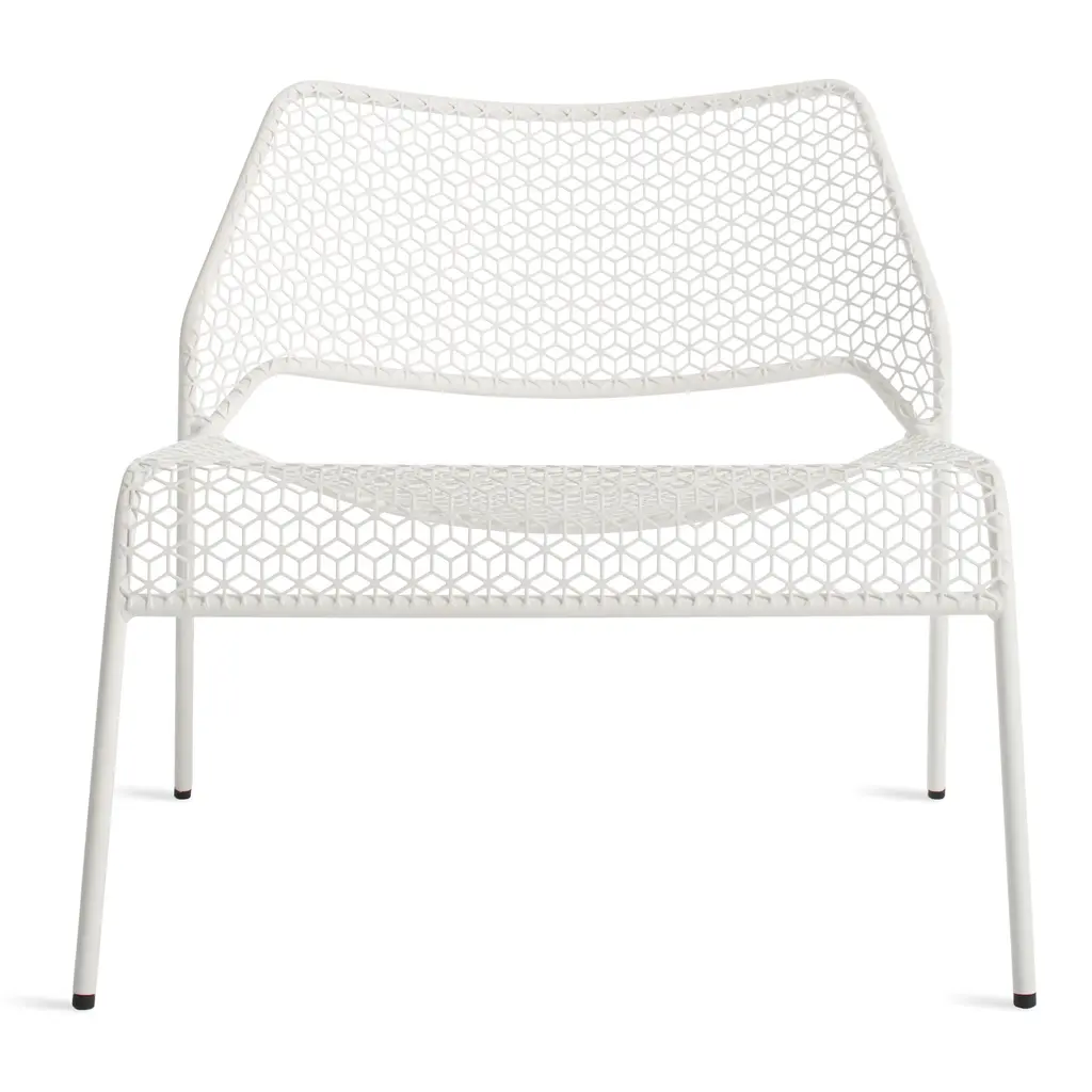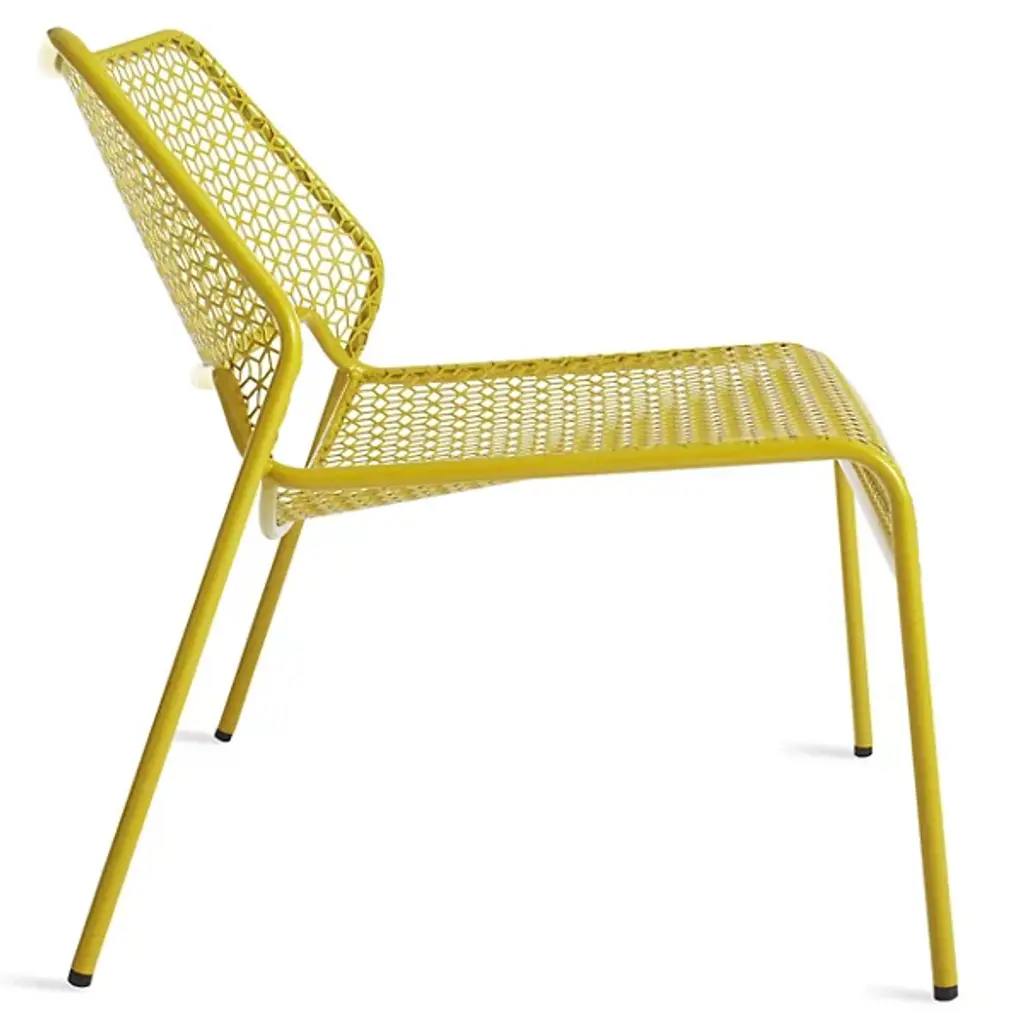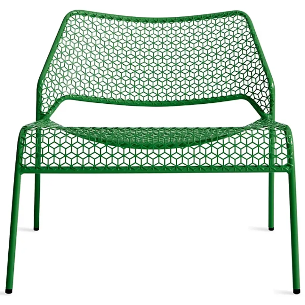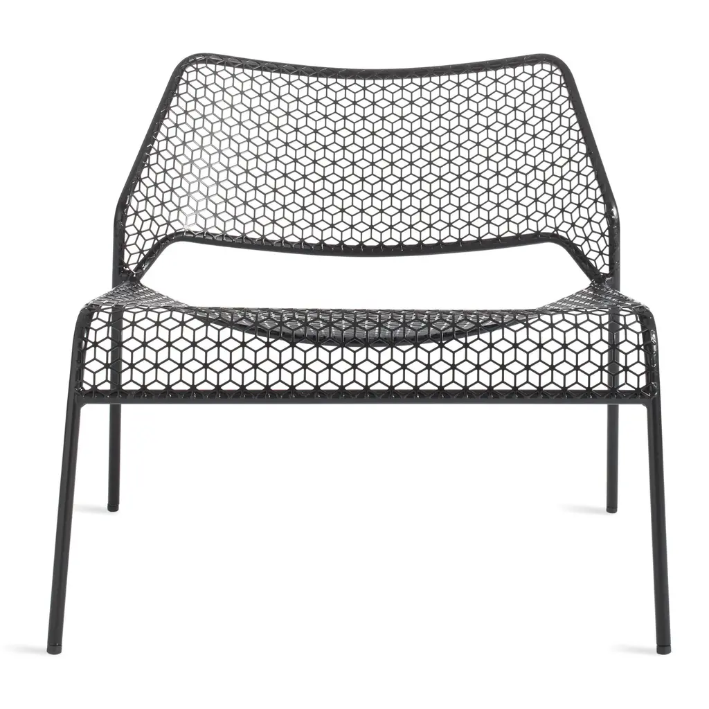 A super-cool update on classic rattan furniture. The Blu Dot Hot Mesh Lounge Chair features a uniquely lacy geometric pattern made by perforating steel. A durable powder coat enhances the pattern and protects the metal for long-lasting use indoors and out. The Hot Mesh Lounge Chair is stackable, making it easy to put away during the cold winter months if you're using them outdoors. There's also a matching ottoman (sold separately) that completes this chair's relaxing potential.