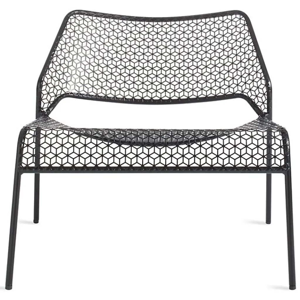 A super-cool update on classic rattan furniture. The Blu Dot Hot Mesh Lounge Chair features a uniquely lacy geometric pattern made by perforating steel. A durable powder coat enhances the pattern and protects the metal for long-lasting use indoors and out. The Hot Mesh Lounge Chair is stackable, making it easy to put away during the cold winter months if you're using them outdoors. There's also a matching ottoman (sold separately) that completes this chair's relaxing potential.