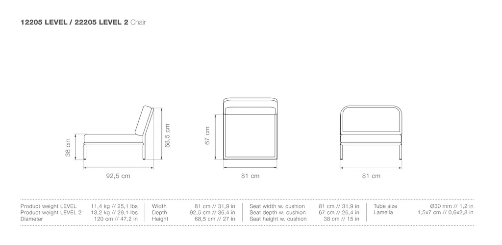 The LEVEL Lounge Chair is the perfect addition to your outdoor living space. It is constructed of an aluminum frame and comfortable cushions.
