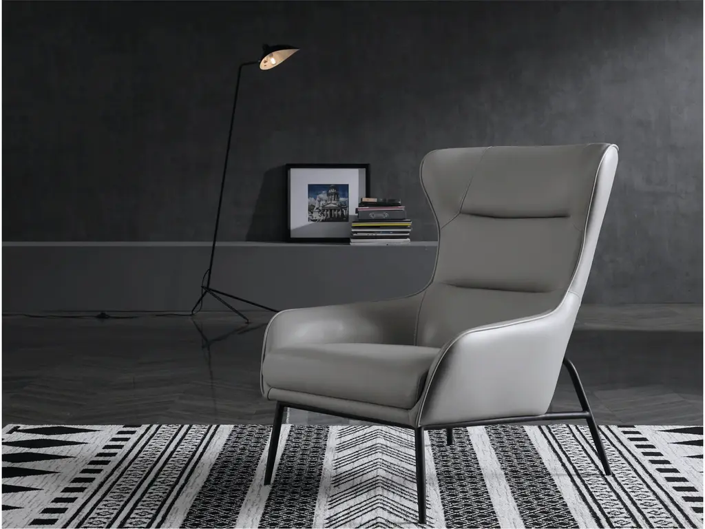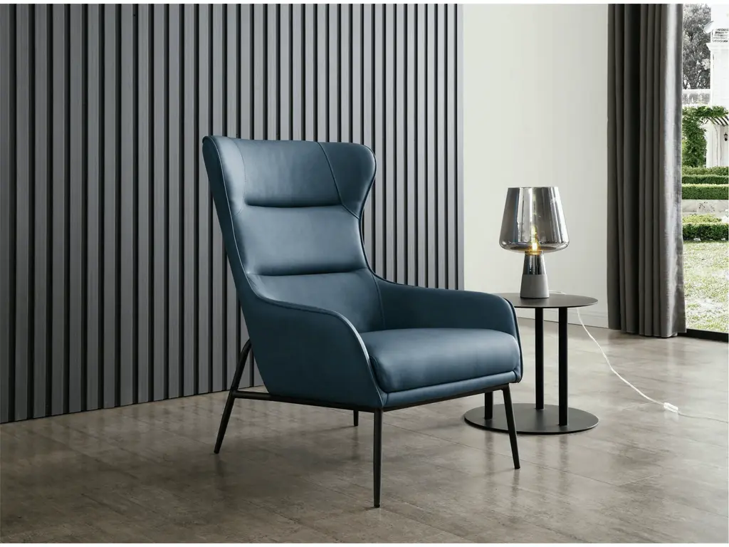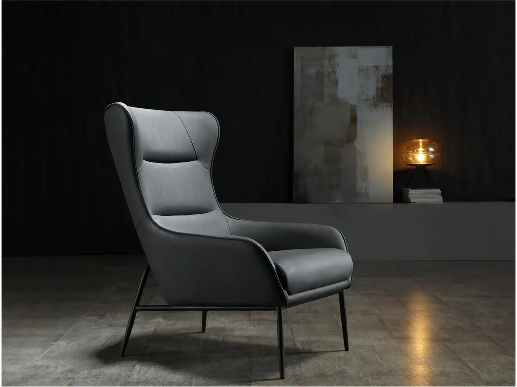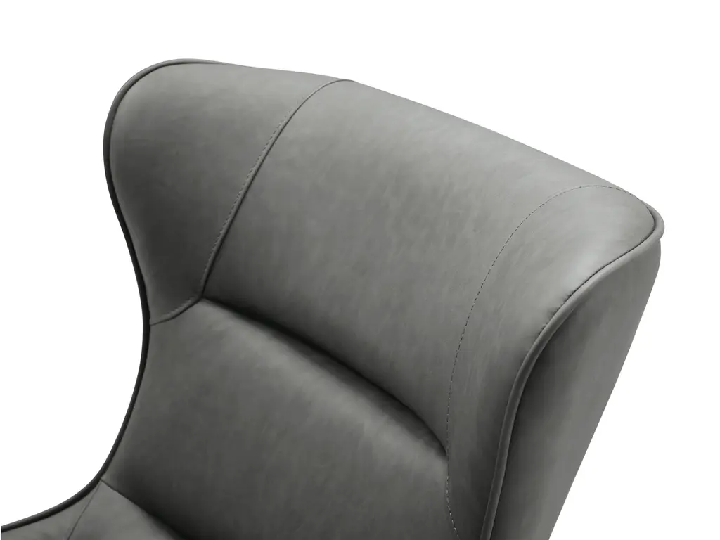 Our Hyatt Leisure Chair comes in three colors: light grey, dark grey, and blue. The back is made of soft faux leather, and the seat is upholstered in fabric. A sanded black coated steel base gives the chair a luxe feel and makes it easy to match with your home’s decor.
