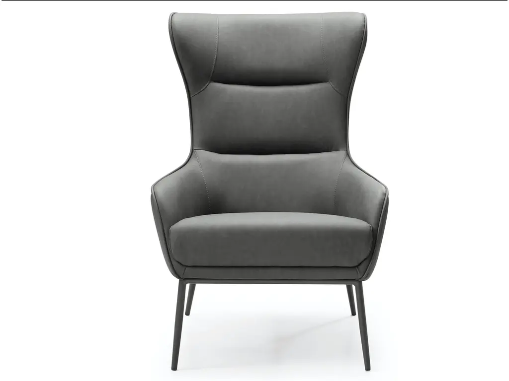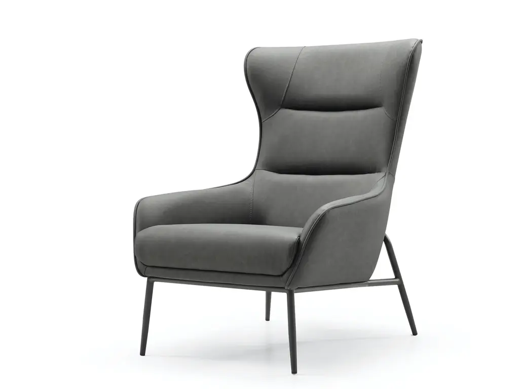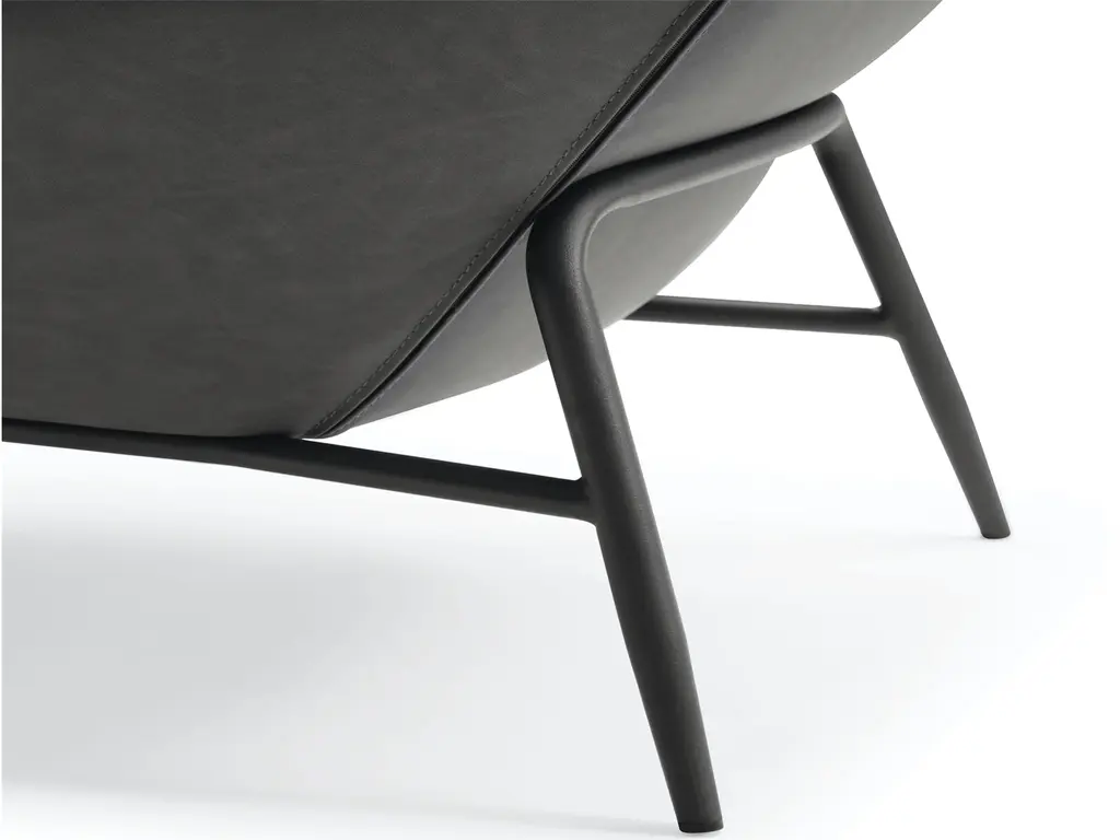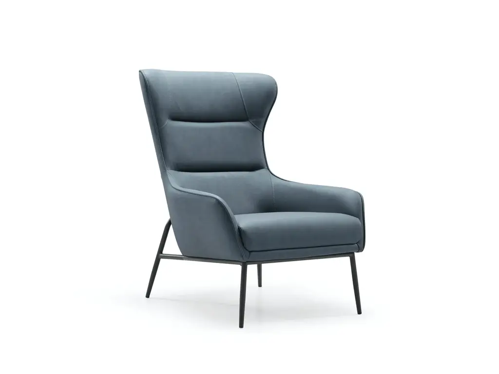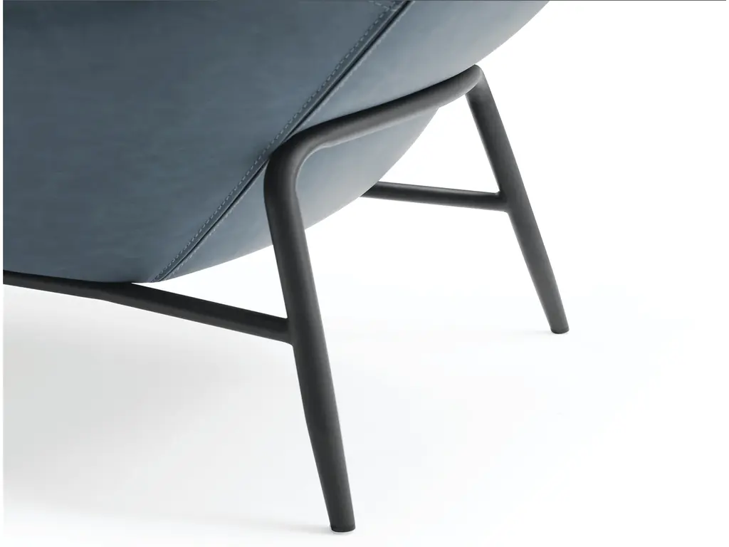 Our Hyatt Leisure Chair comes in three colors: light grey, dark grey, and blue. The back is made of soft faux leather, and the seat is upholstered in fabric. A sanded black coated steel base gives the chair a luxe feel and makes it easy to match with your home’s decor.