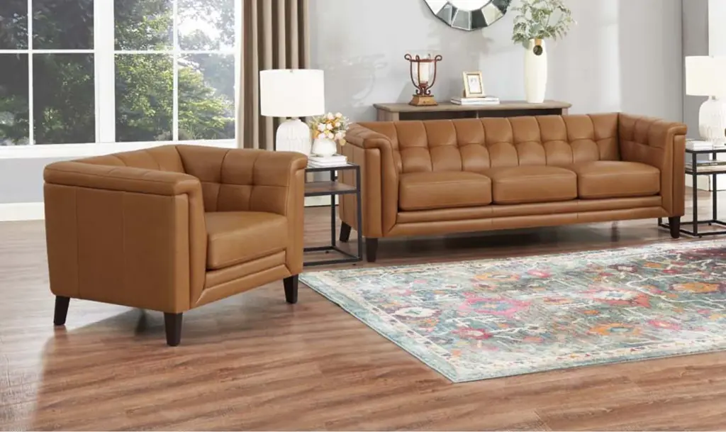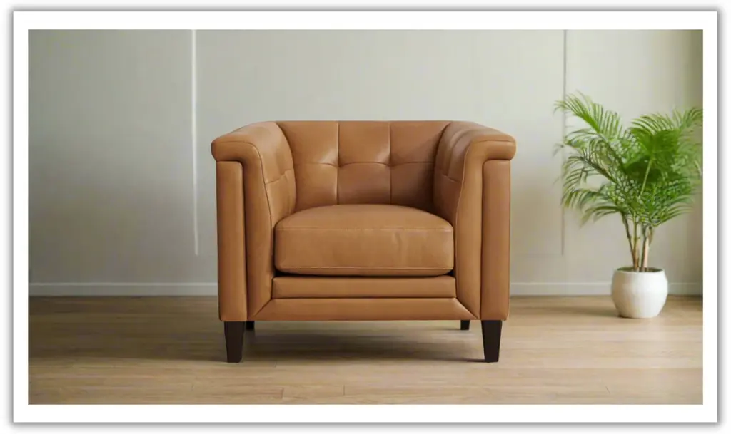 Hydeline Arvo Leather Chair With Tufted Shelter Arms