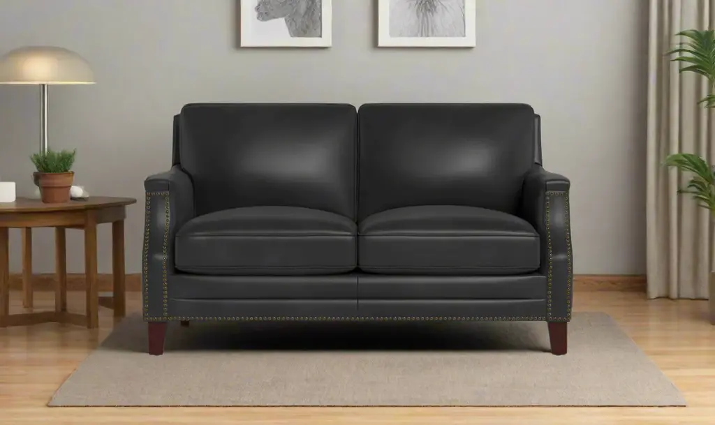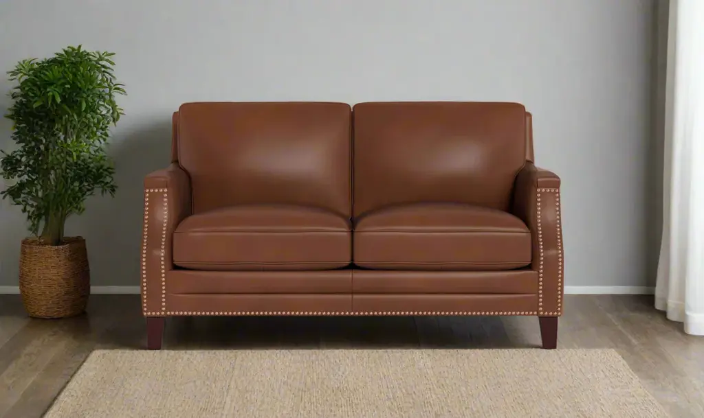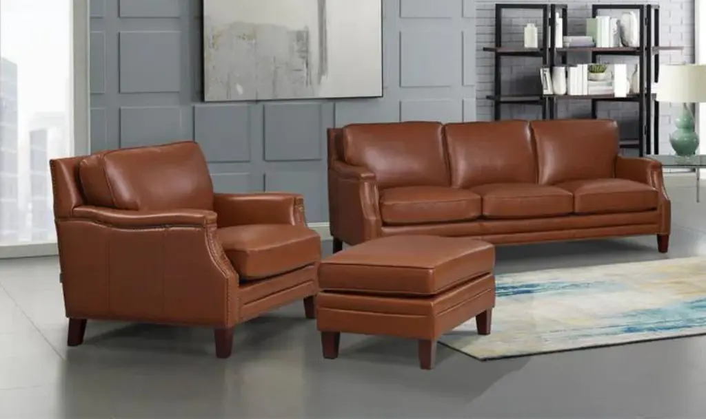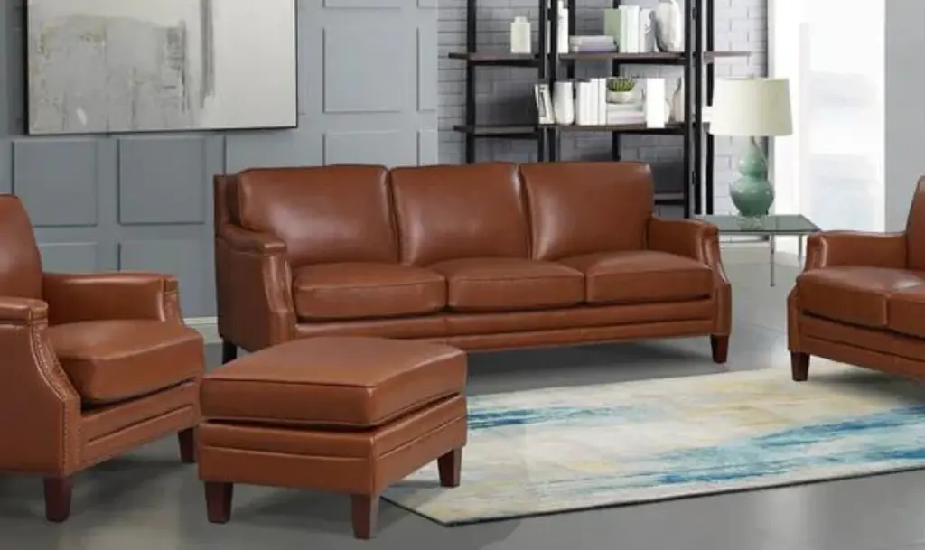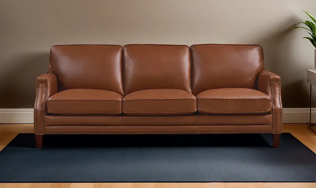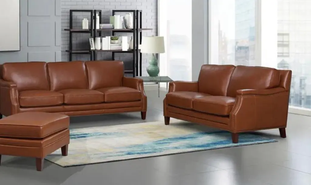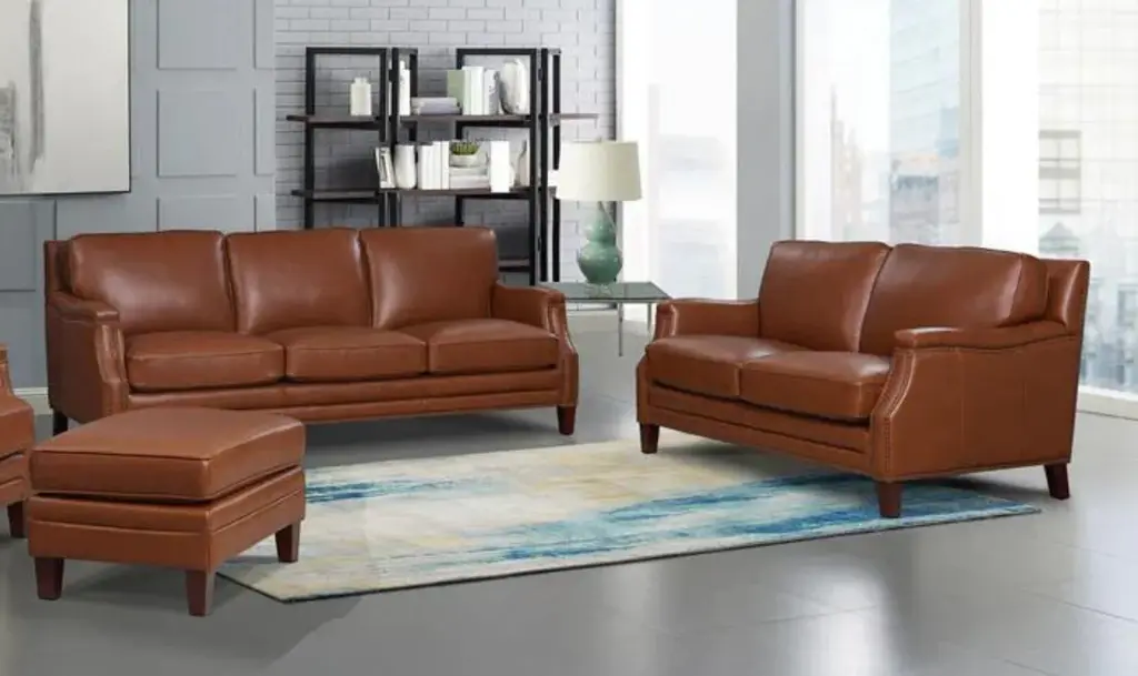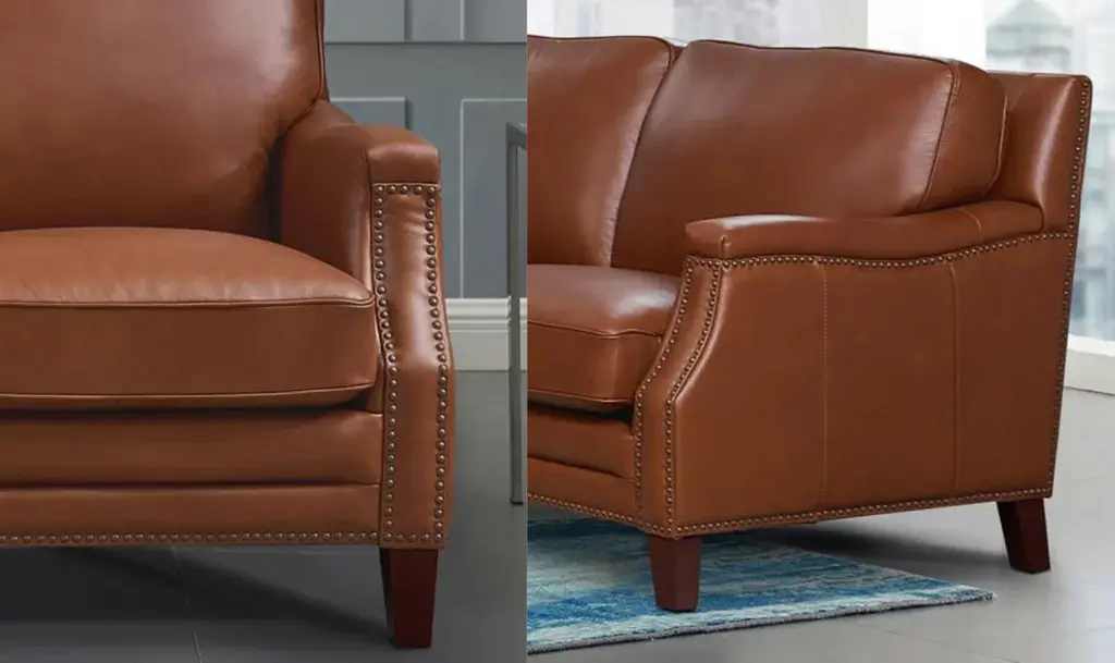 Hydeline Camano Leather Living Room Set With Nailhead Finish