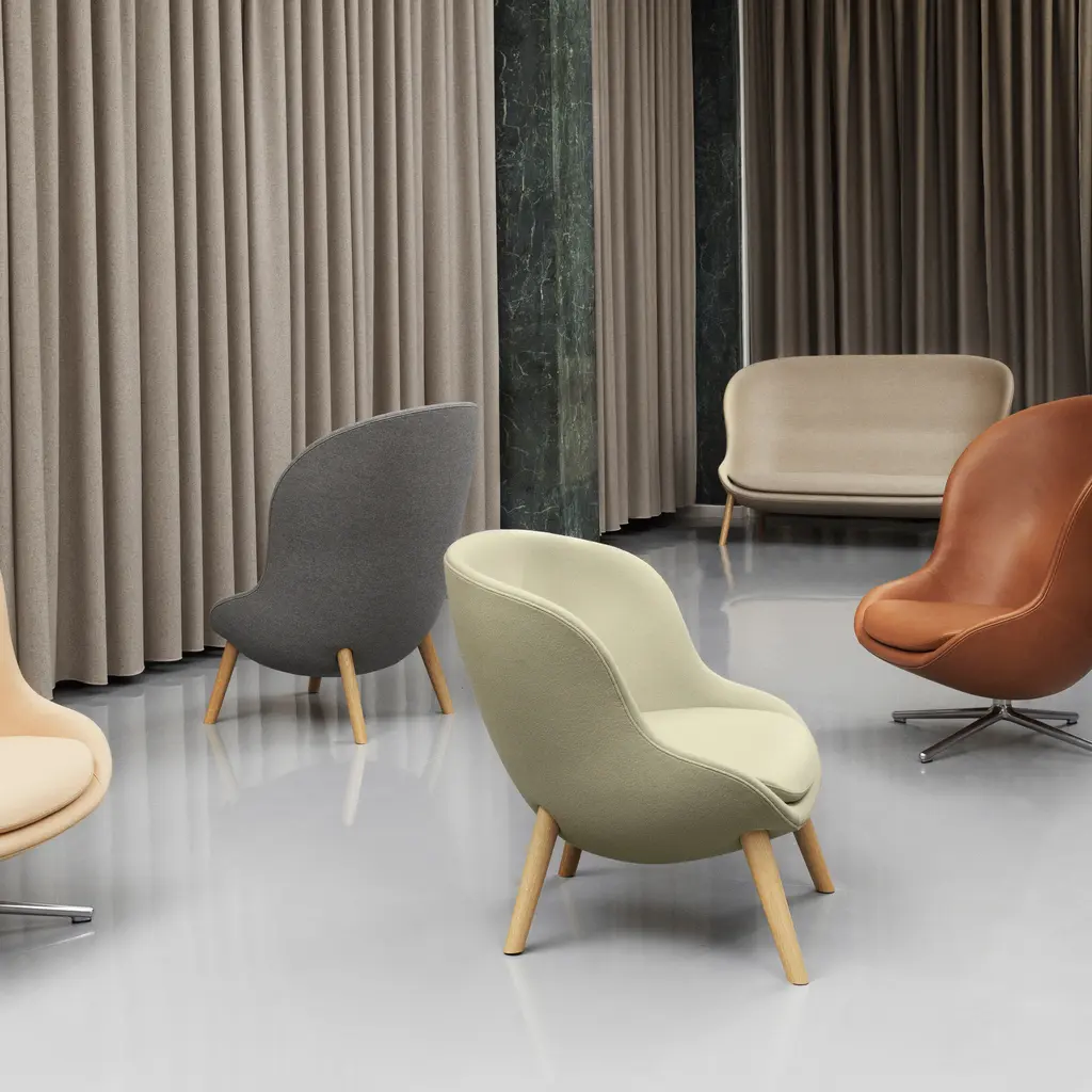 This enveloping lounge chair seems to be the very definition of the Danish tradition of hygge—an atmosphere of calm and contentment—with its high sheltering sides and organic contours set on natural wood legs. With his Hyg seating, designer Simon Legald wanted to provide a respite, a "room within the room," for relaxation or a quiet place to read a book or catch up on email. Sheathed in a fine textile upholstery or rich leather, the chair's concave form makes a strikingly beckoning addition to nearly any setting.