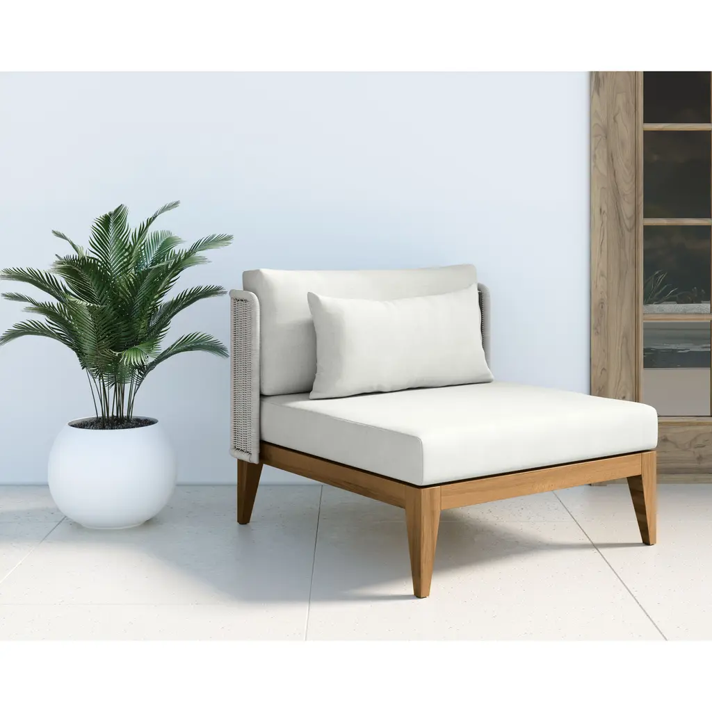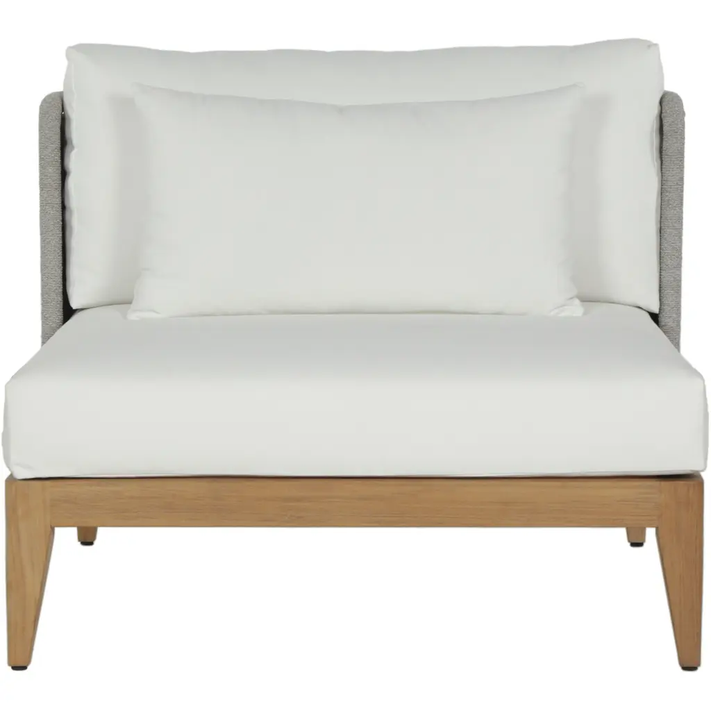 Create an elevated outdoor lounge with this modern armless outdoor lounge chair from the Outdoor by SUNPAN collection. Designed with a comfortable stinson white seat and greymix weave seatback, guests won't want to leave. A solid teak wood frame completes the design. Suitable for indoor and covered outdoor spaces.