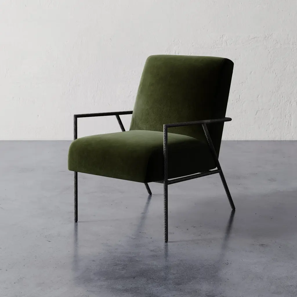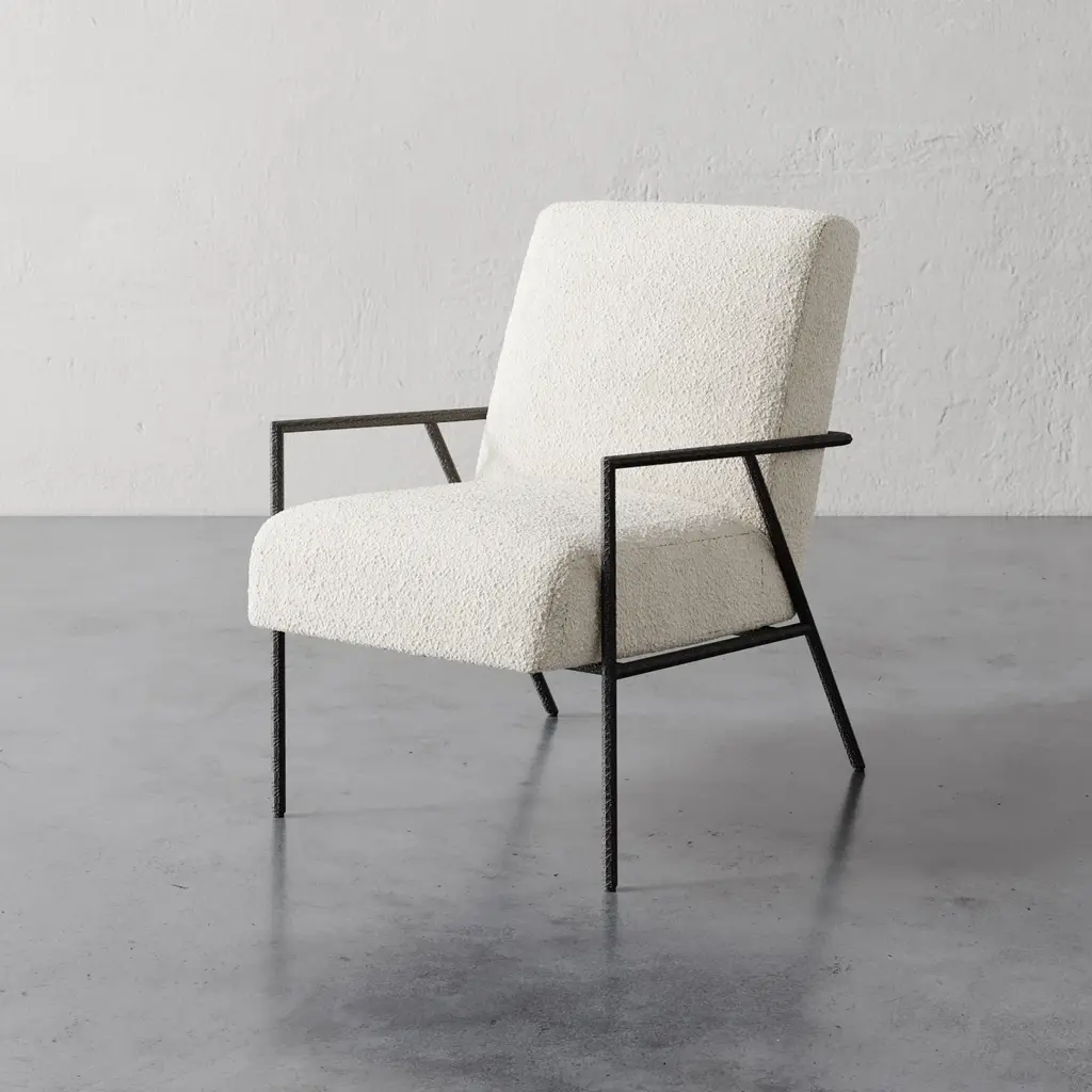 The Imane Lounge Chair is a study in refined contrasts—where soft form meets sculptural strength. A generously proportioned upholstered seat rests within a deeply hammered metal frame, bringing together comfort and architectural structure. The hand-applied bronze finish enhances the rich texture of the frame, adding depth and dimension. With its thoughtful balance of materials and modern design, the Imane Chair is a bold, textural addition to any space.