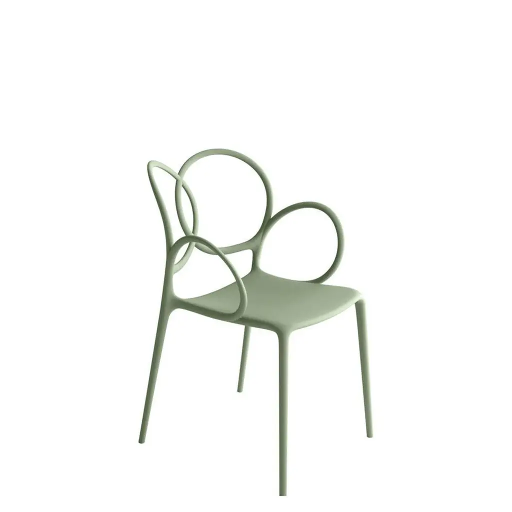 Due to the delicacy of the finish it is not recommended to stack the armchairs.The company reserves the right not to accept any complaints.The Sissi Stackable Armchair by Driade is a graceful, stylish armchair. Crafted with molded polypropylene, this elegant design pairs simplicity of material with fanciful lines and shapes, perfect to accentuate modern and classical spaces—a rooftop terrace in Venice, patio in Palm Springs, or rock garden in Austin.Sissi is a sculptural, very versatile, self-centered and contemporary piece.“Its modern design winks cheekily at the past and at the female world. The merging and intersecting rings look as if they have been sent by the hand of the Viennese craftsmen, whom since over a century ago, would offer the world an elegant and design archetype. The connections, linked in such a sensual way, turn Sissi into a refined and sculptural piece, just like the ultimate Viennese chair-famous for its wooden curves-it is inspired by. Just like a confident, self-assured women changes her clothes to suit her mood, this chair is complemented by an essential part of its design, the seat cover." Ludovica and Roberto Palomba.