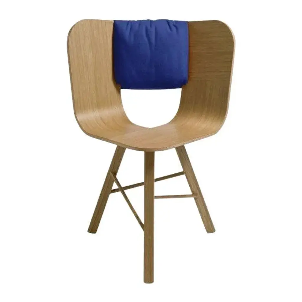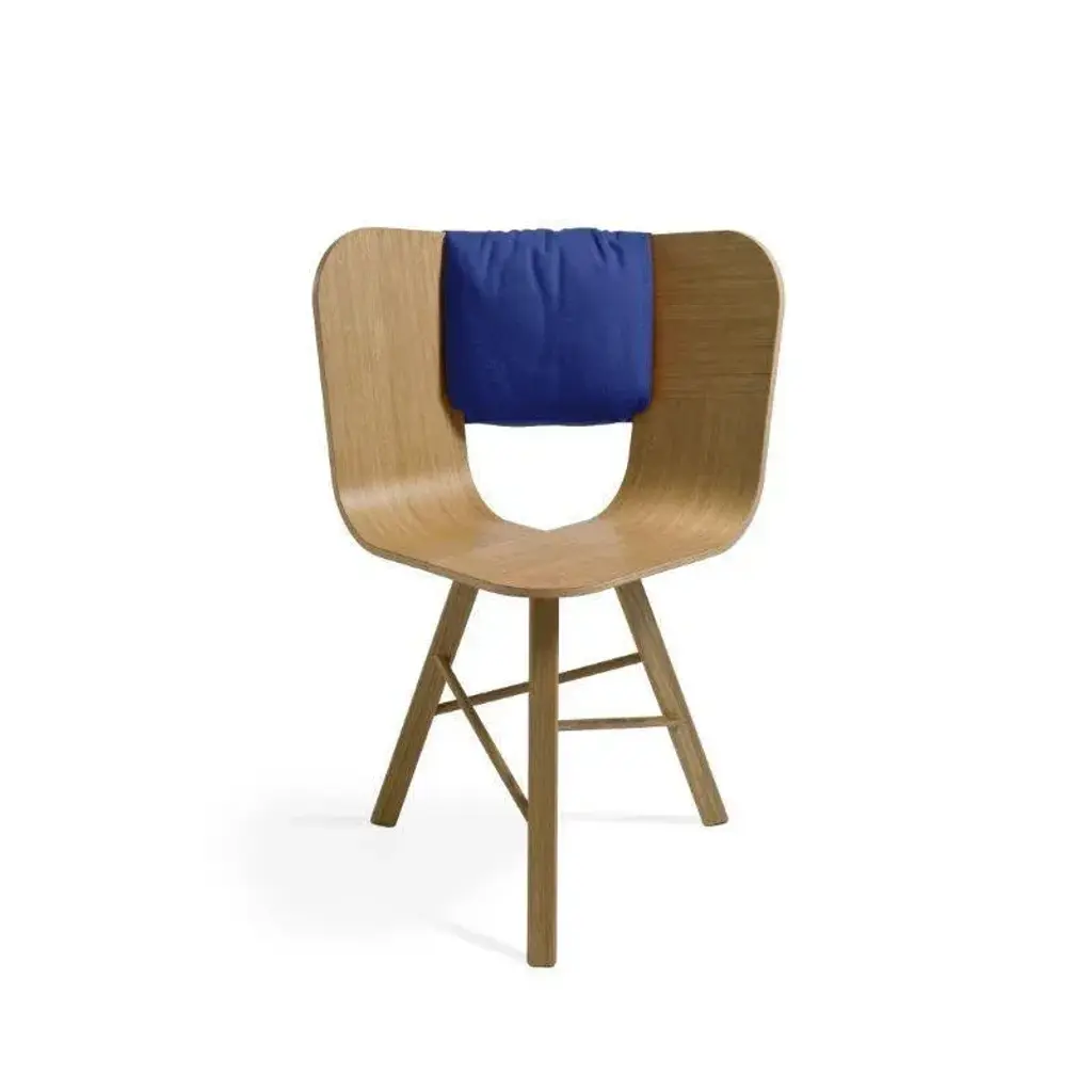 Saddle cushion, indaco for tria chair by colé italia with lorenz + kaz 2012 dimensions: - materials: shaped for tria chair; 2 pockets on the back, category c also available: different fabrics and colors. Tc: c.o.m. Fabric - send us your own material ca: cat a - angel (polypropylene), ganesha (synt. Leather), nord wool (felt) cb: cat b - tiffany (polyestere), lana (aquaclean) cc: cat c - velvetforthy (velvet), topia (wool), novum (wool), opera (felt) cp: cat p - milano (full grain leather) special cushion designed to fit with the back angle of tria chair in order to give more comfort to the seat. It is upholstered on the front and velcro fixed on the back with 2 useful pockets. Our iconic chair designed by german duo lorenz + kaz. Tria is a table chair, at the same time many people place it as a sculpture, as ornament in an entrance, a bedroom or in a living room. It recalls the impossible forms of dutch graphic artist and engraver maurits escher, defining itself in a game of twists and elusive leak. The corolla-shaped shell can be used in two different seating positions, center or side, in this case with one armrest. The shell is composed of three equal elements in bent plywood assembled together and veneered with a special wood finishing ivory/ black stripes. It is also available in veneered oak, natural or stained open pore in different colors, as well as customized colors (min. 4 units).