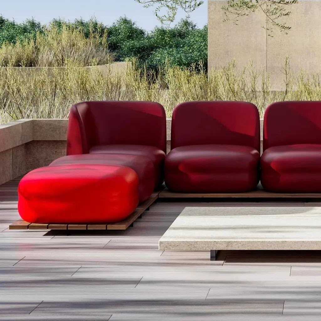 Indoor/outdoor L Shape Modular Seating Made Of Flexyskin Built On Wooden Base