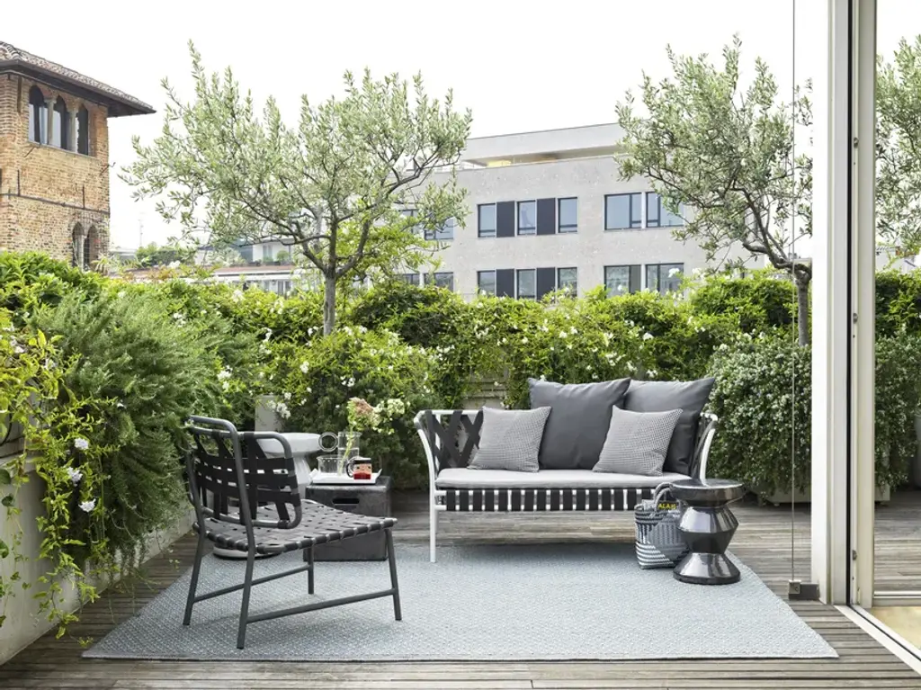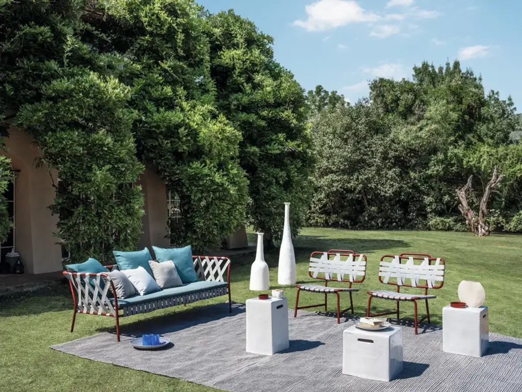 Inout 856 is an easy chair. Defined by a wide seat with slightly curved backrest for an enveloping furnishing element, Inout 856 develops around a light structure in Pearl, Oxido, Agate or Slate painted embossed tubular aluminium, an ecological material, unique for its technical qualities. To this is added a particular weave in grey, black, blue or tobacco elastic strap, an innovative product based on synthetic rubber and propylene.Inout is a broad and varied collection of chairs, stools, armchairs, sofas, tables, occasional tables, and accessories portraying the countless ways Gervasoni imagines spending time outdoors. Exotic suggestions are alternated with elements of sophisticated essentiality. Traditional outdoor materials such as wood, worked to enhance its natural properties, are paired with latest generation ones specifically designed to withstand weathering, but no less seductive and poetic. Even the weaving tradition is re-interpreted to resist against water and sunlight, maintaining its technical characteristics and colours unaltered over time.The Gervasoni Outdoor collection is the result of a careful selection of natural and technical materials worked with skillful craftsmanship and innovative technologies. The company’s products adapt to different styles of outdoor living, furnishing – with absolute ease, elegance and free customisation – terraces, gardens or swimming pools, from the most urban and contemporary to the most sophisticated or surrounded by nature. Each place has its own unique character that must be respected and enhanced. The key features of the range are, as always, attention to detail, excellent workmanship and in-depth research into materials.