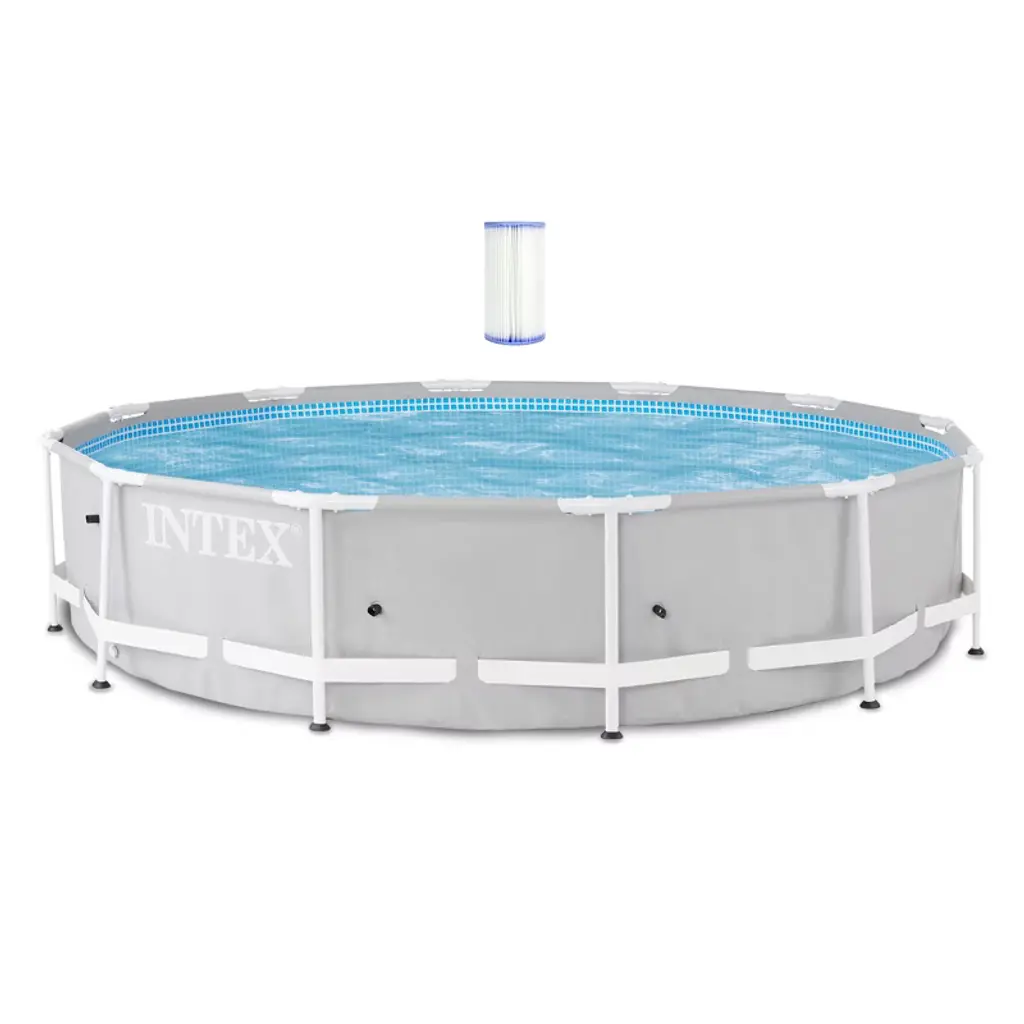 Make a splash this summer with the Intex 24' x 12' x 52" Ultra XTR Rectangular Frame Pool Set. Package comes with 2 Intex Floating Recliners and Inflatable Mega Chill II Beverage Cooler for the most chill pool set up in your neighborhood. The rectangular swimming pool design is perfect for narrow backyards, lap swimmers, and pool games. The Ultra Frame design provides excellent durability and a sleek gray finish, all while making setup quick and easy. This pool includes everything you need for a great pool experience, including the powerful Intex 1,600 gallon per hour sand filter pump, ladder, debris cover, ground cloth, maintenance kit, and volleyball set. The sand filter pump saves you time, money, and frustration. The sand filter function replaces the need to buy expensive filters by only needing routine back washing and replacement sand every 5 years. Swim your summer days away and have a blast in the water with this Intex Ultra Frame Rectangular Pool Set with Floating Recliners and Floating 72-can Beverage Cooler. Note: Requires flat, level ground for proper installation. Gray outer liner and blue tile-print inner liner for a classic, clean look Easy maintenance with sand that only needs routine backwashing and replacing every 5 years Quick set up means it's ready for water in 60 minutes Durable frame is made of high-quality, galvanized steel with precision-engineered locking system Encapsulating inner and outer powder coating prevents rusting Hydro aeration technology in the pump improves circulation, filtration, and water clarity while increasing the water's negative ions Sand filter pump has a pump flow rate of 1,600 gallons per hour Includes pool, pool ladder, ground cloth, sand filter, pool cover, deluxe pool maintenance kit, and volleyball set Pump voltage: 110-120V Pool type: Above ground Material: Steel Water capacity: 8,403 gallons at 90% Liner included: Yes Filter pump included: Yes Cover included: Yes Ladder included: Yes Color: Gray Dimensions (L x W x D): 24 x 12 x 4.3 feet Manufacturer warranty: 2-year warranty Intex Floating Recliner Lounge with Cup Holders (2 Pack) Lounge chair design for added comfort 2 air chambers 2 cup holders Durable, 18-gauge vinyl construction Repair patch and shelf box included Air pump not included Part number: 58868EP Quantity: 2 Dimensions: 71 x 53 inches Weight: 7.5 pounds Warranty: 30 days Intex Inflatable Mega Chill II Beverage Cooler Float Made with durable 16-gauge vinyl Space inside the cooler for up to a 72 cans and plenty of room for ice Part number: 58821EP Color: Blue and white Dimensions (L x W): 48 x 38 inches Weight: 7 pounds Manufacturer warranty: 30-day warranty