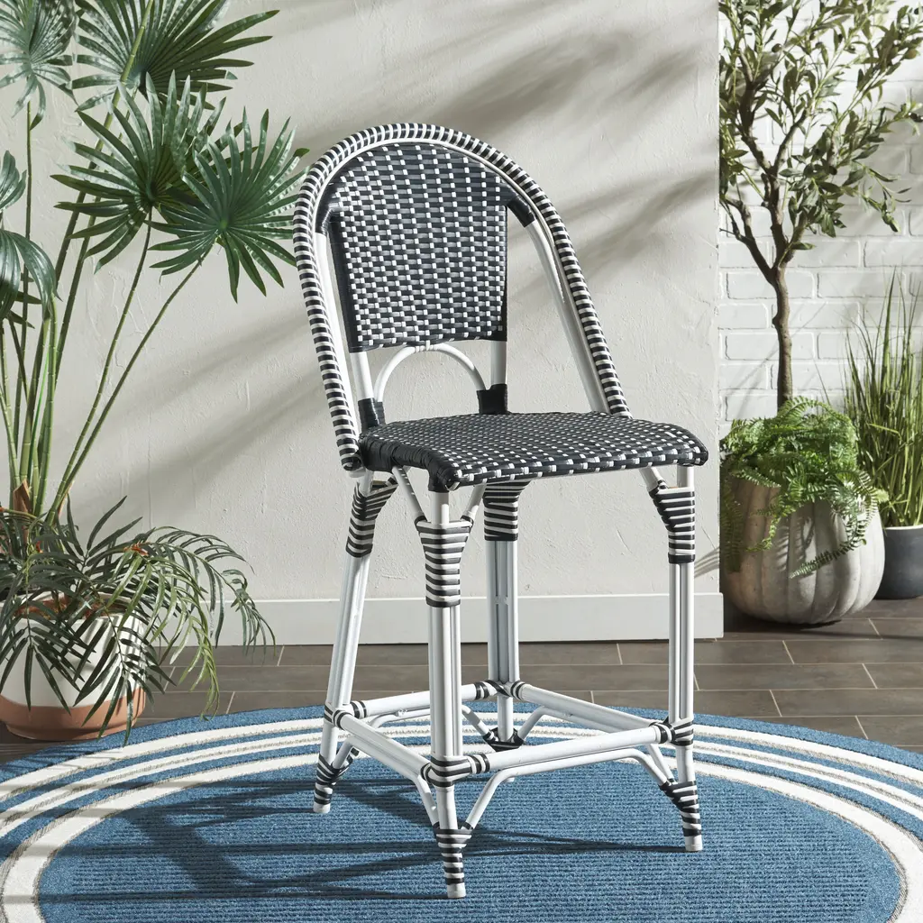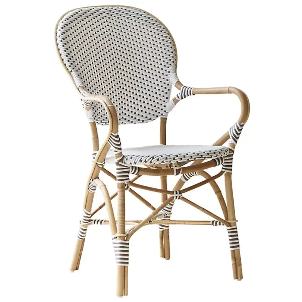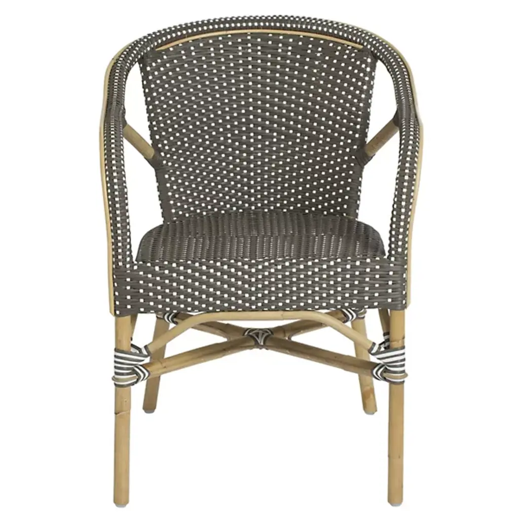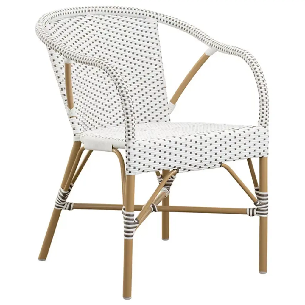 This bistro chair is framed in Alu-Rattan, or sturdy aluminum wrapped in ArtFibre--an easy-to-clean, weatherproof cord--and finished with woven reinforcements. We love how woven white-and-brown accents add a pop of pattern and contrast to the exposed frame. Suitable for indoor or outdoor use.