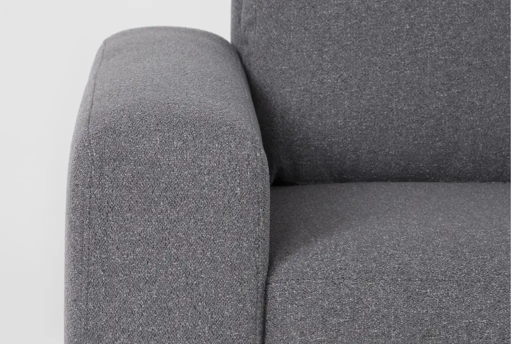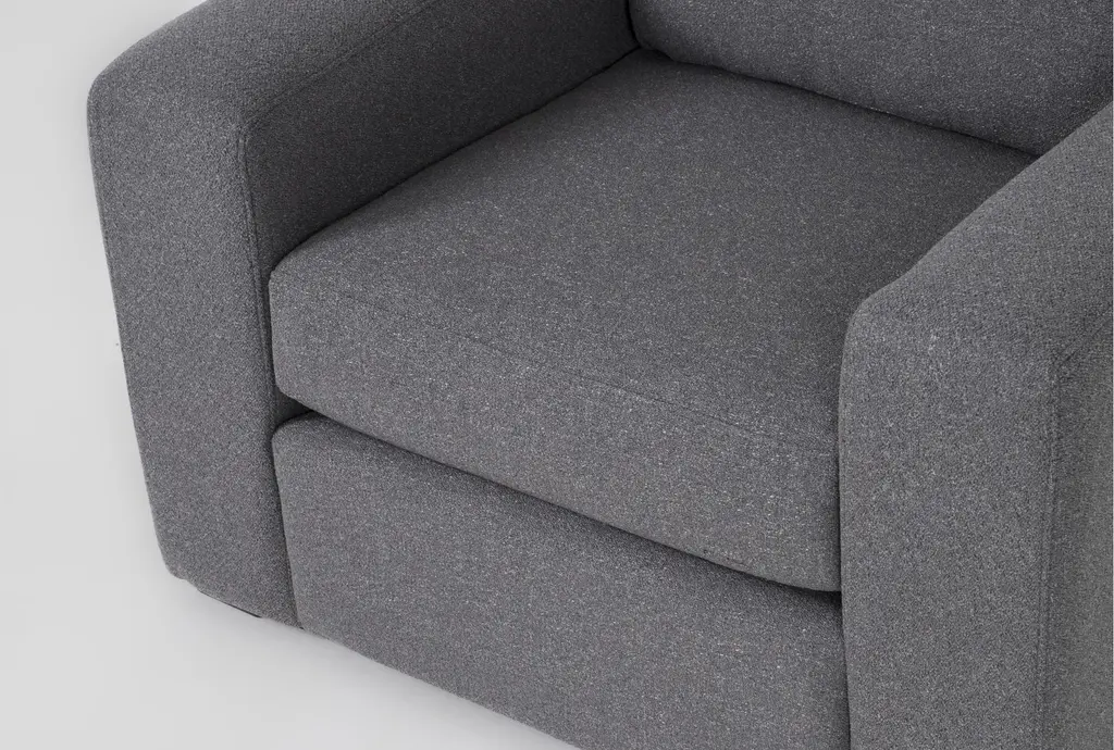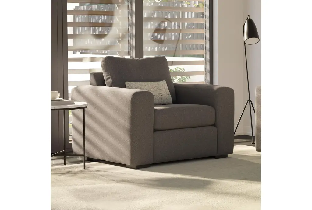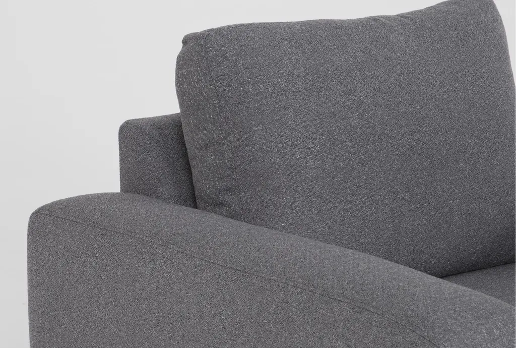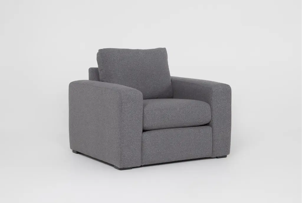 Introducing the Isabella II Charcoal 43" Chair, a modern addition to your living room. This oversized chair offers a comfortable seating experience with its track arms and plush cushions. The charcoal color and minimalist design make it a versatile piece that complements various decor styles.