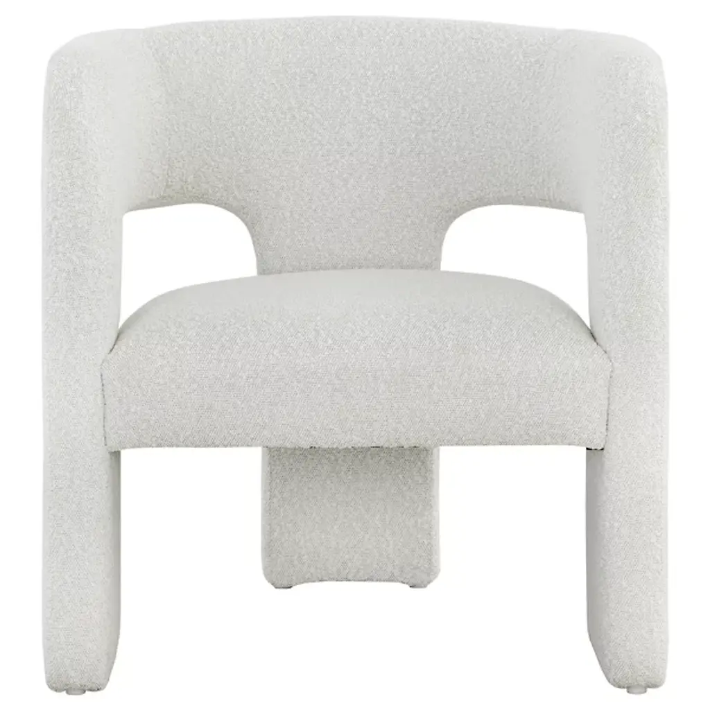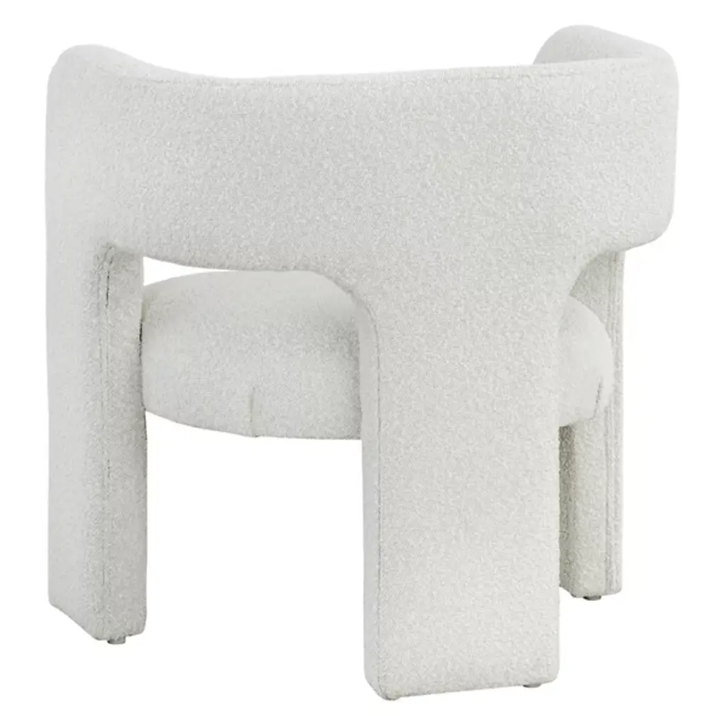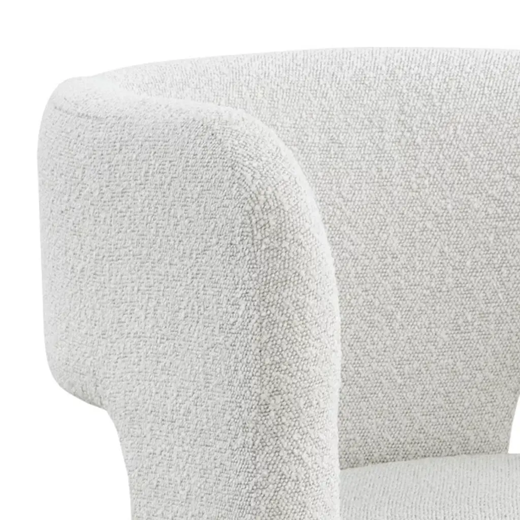 The Isidore Lounge Chair from Sunpan combines clean lines and contoured arches to create a distinct contemporary piece. Its stylish design is characterized by a curved backrest and an open back, ensuring optimal comfort. This exceptional, sculptural chair is fully upholstered in white boucle fabric, providing a fresh and inviting look. Crafted with polyester material and a plastic frame, it effortlessly blends contemporary and mid-century modern styles, seamlessly coexisting in a chic, contemporary design.